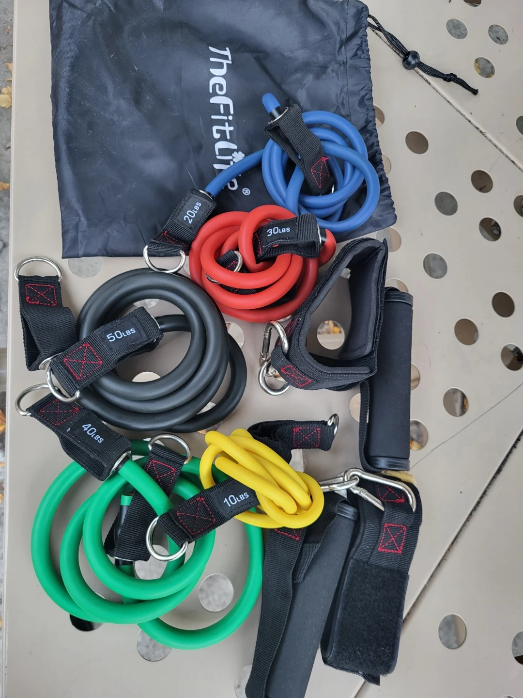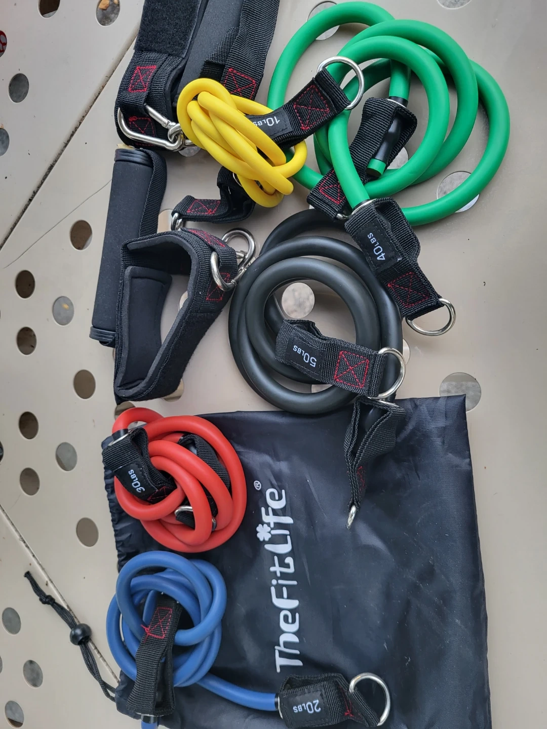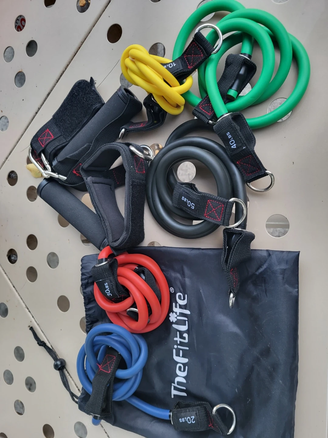Get a full-body workout with this set of TheFitLife resistance bands! Each band is a different resistance level, from 10lbs to 50lbs. The set comes with ankle straps and handles for a variety of exercises. Perfect for home workouts or taking on the go!