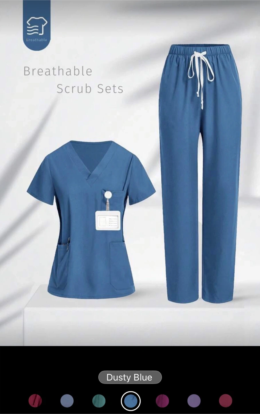 Selling a NWOT breathable scrub set in a lovely dusty blue colour! The set includes a top and pants, both in size XS. The top has a shoulder width of 15.4 inches and a bust of 37.8 inches. The pants have a waist size between 23.6 and 37.8 inches and a hip size of 38.6 inches. This set offers a regular fit with medium stretch, perfect for all-day comfort.