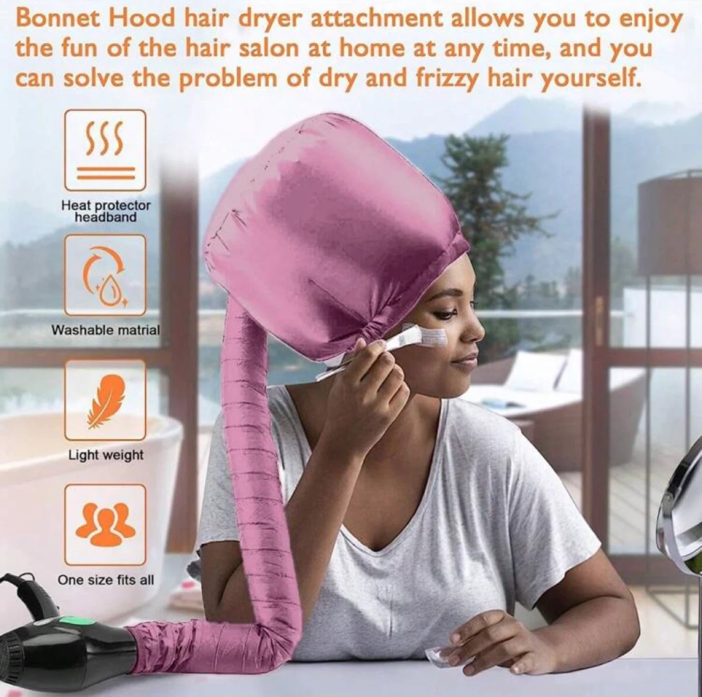 Enjoy hair drying at home with this bonnet hood hair dryer attachment! It's lightweight.