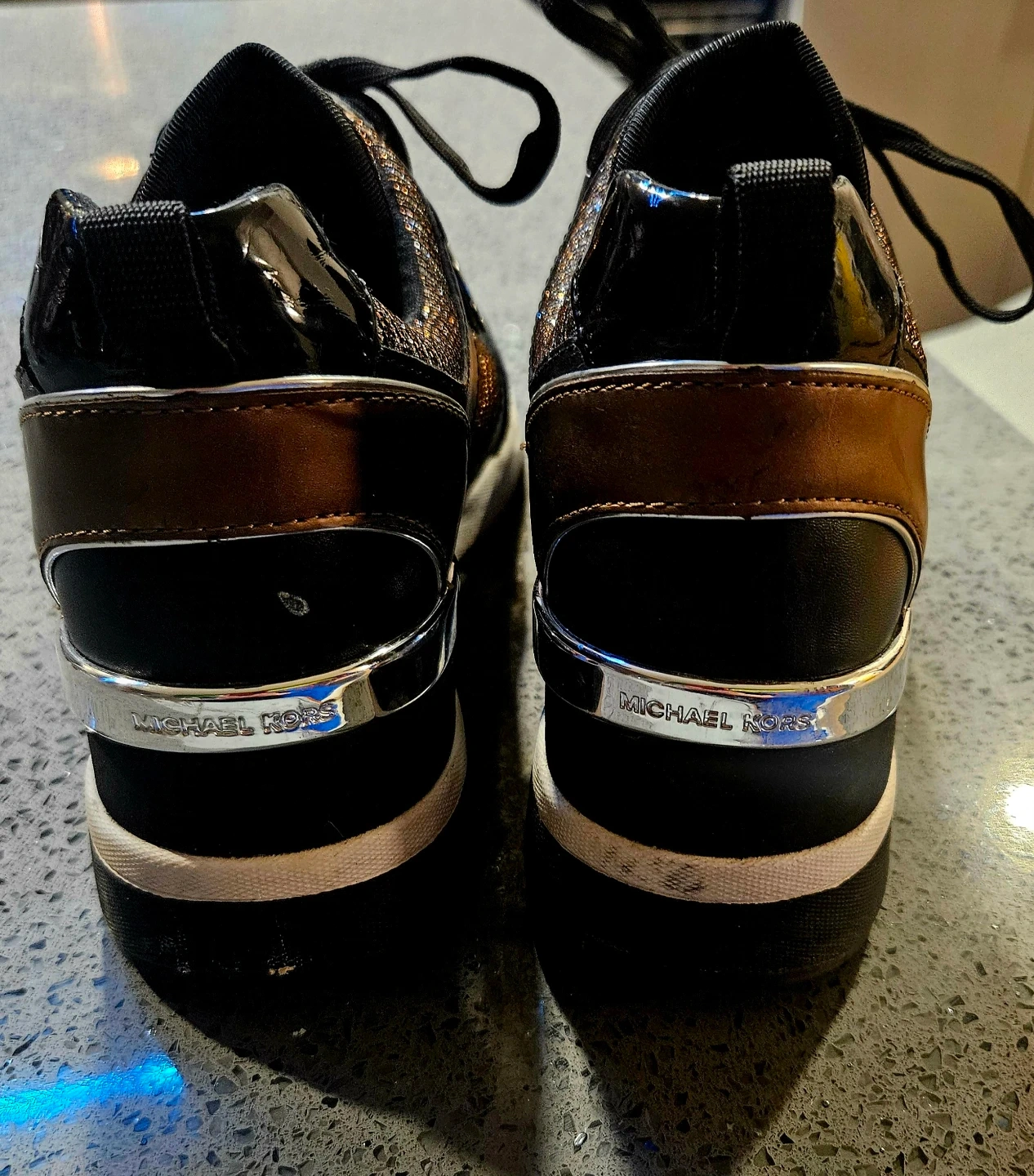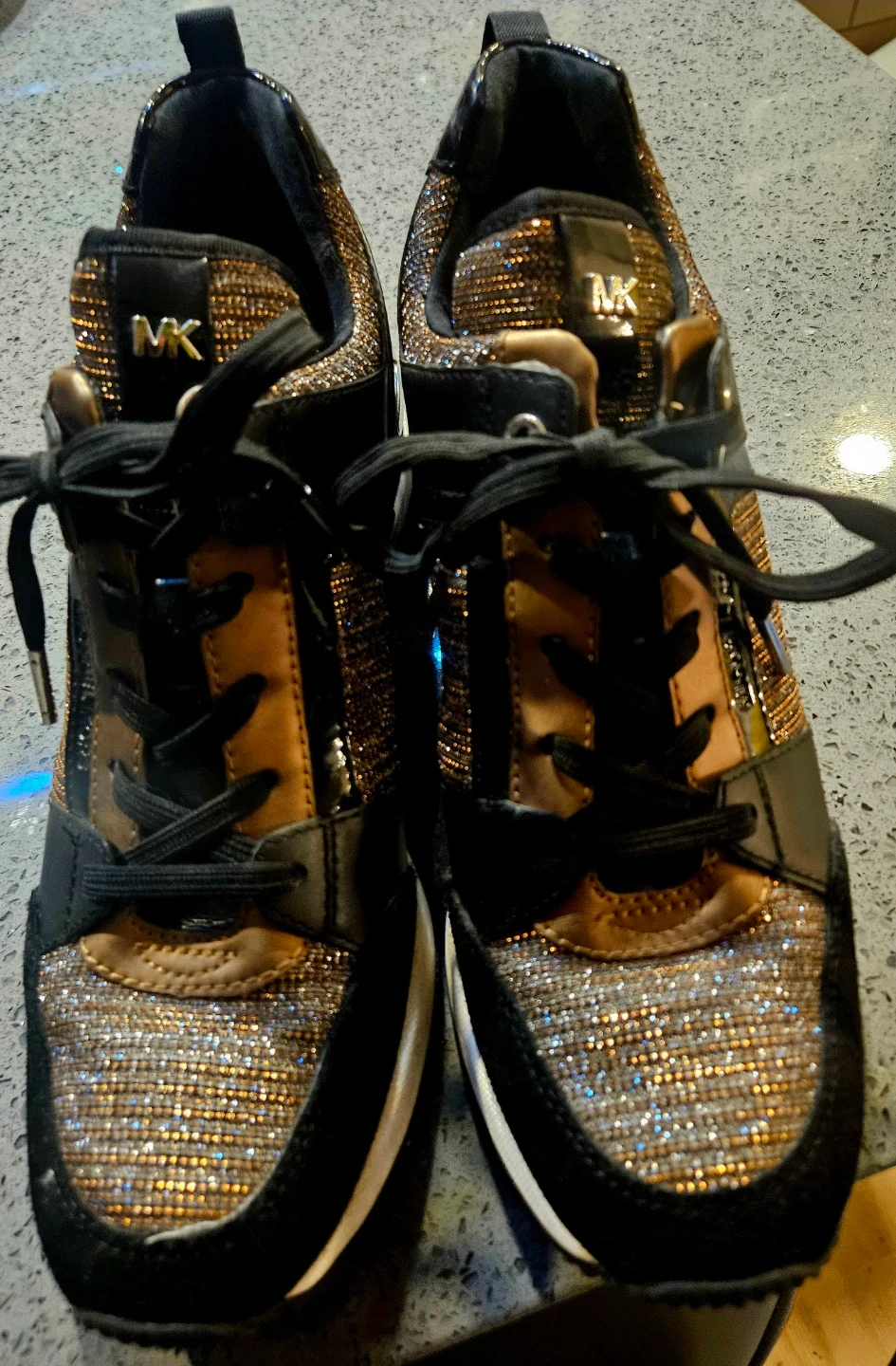 Selling a pair of Michael Kors Georgie trainers featuring leather and embellished nylon with metallic accents. Size 8, New condition and genuine. Perfect for adding a touch of sparkle to your everyday look! Price is firm, paid $170. Pick up and cash only.