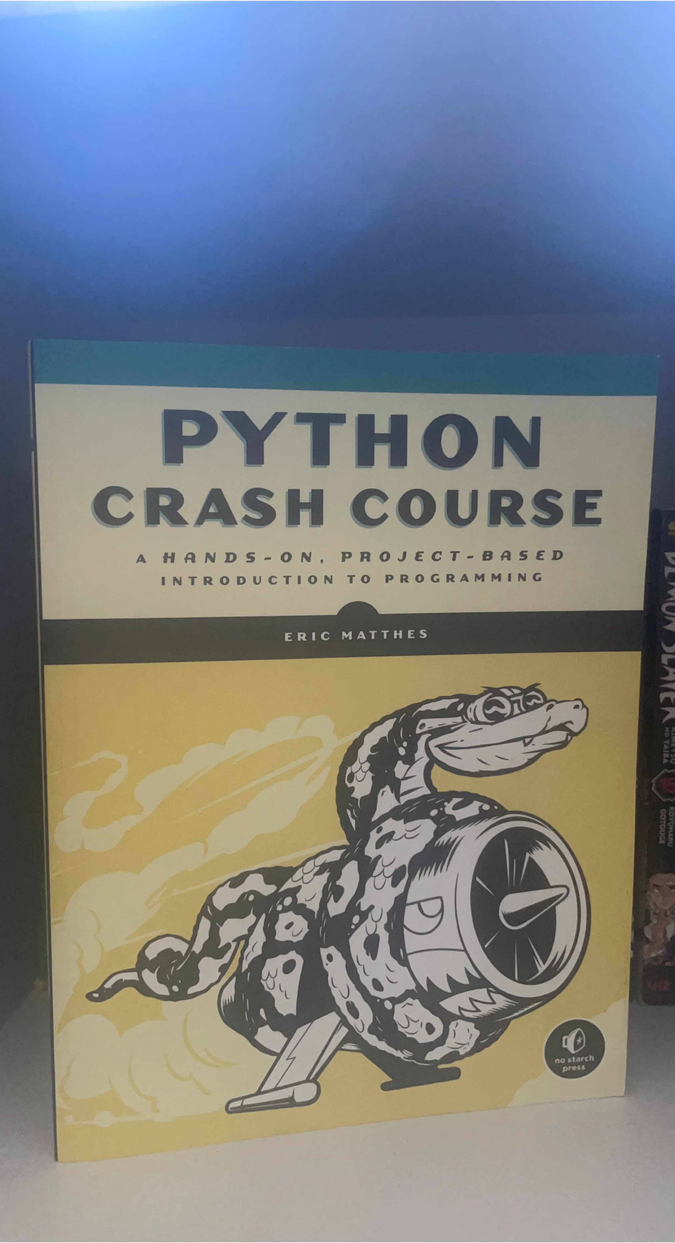 Selling a copy of Python Crash Course by Eric Matthes! It's a hands-on, project-based introduction to programming, published by No Starch Press. Great for beginners looking to learn Python