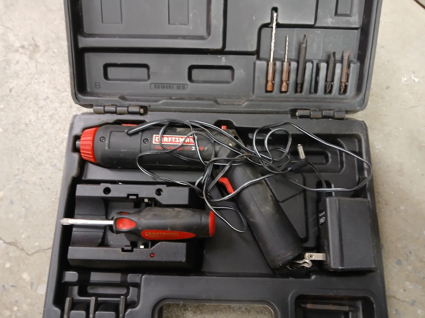 Selling a used Craftsman cordless screwdriver set in its original case. The set includes the cordless screwdriver, a corded screwdriver, various screwdriver bits, and a charger. It's a handy set for small projects around the house
