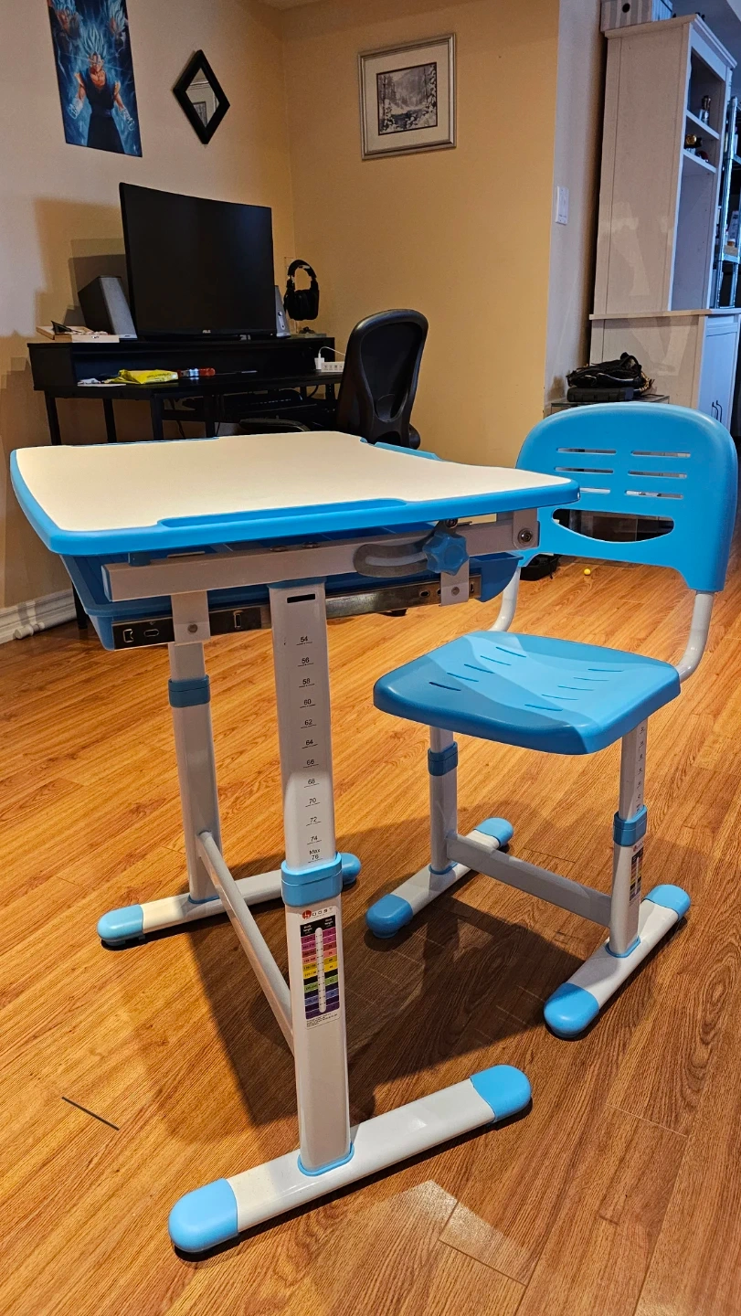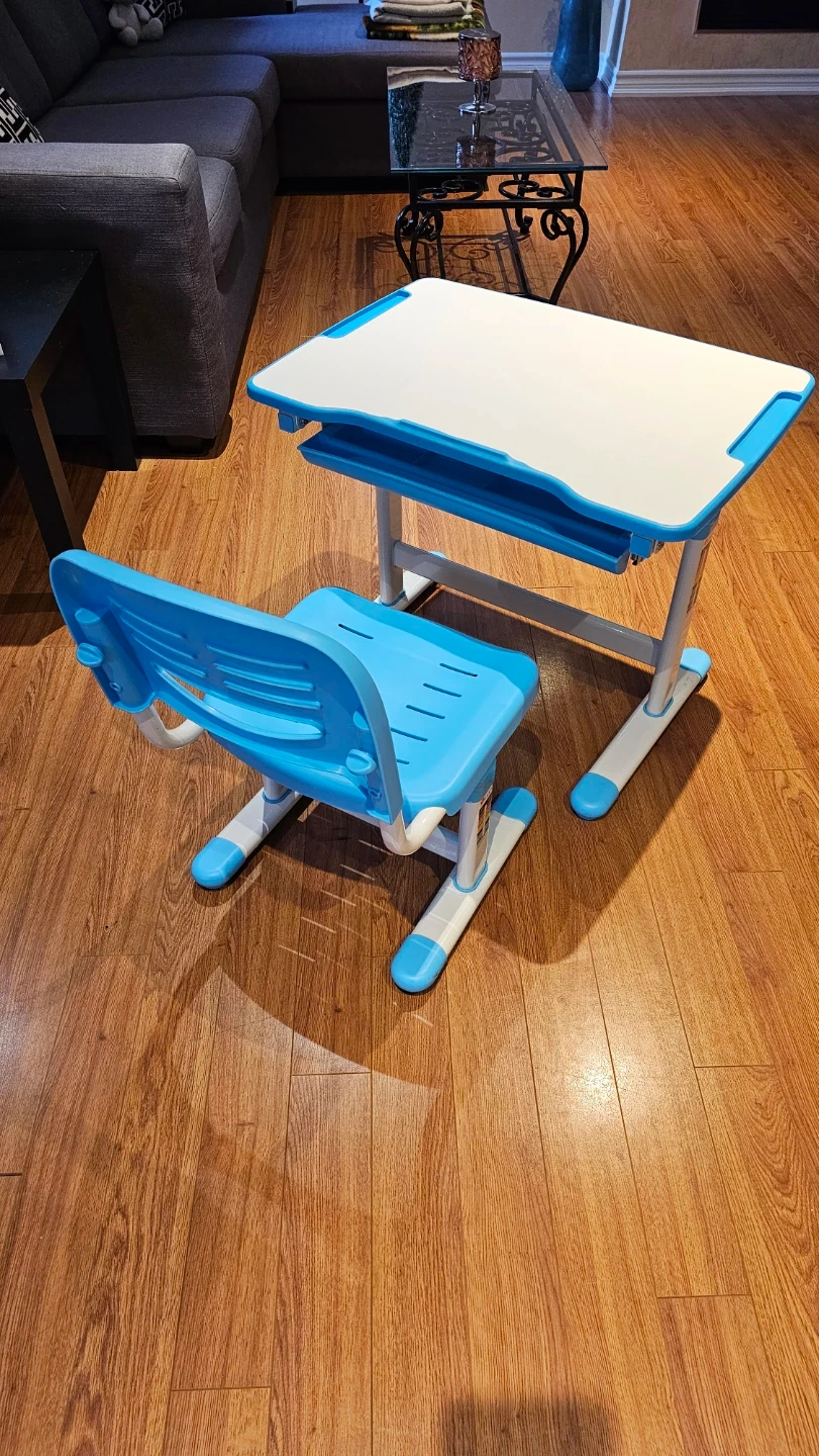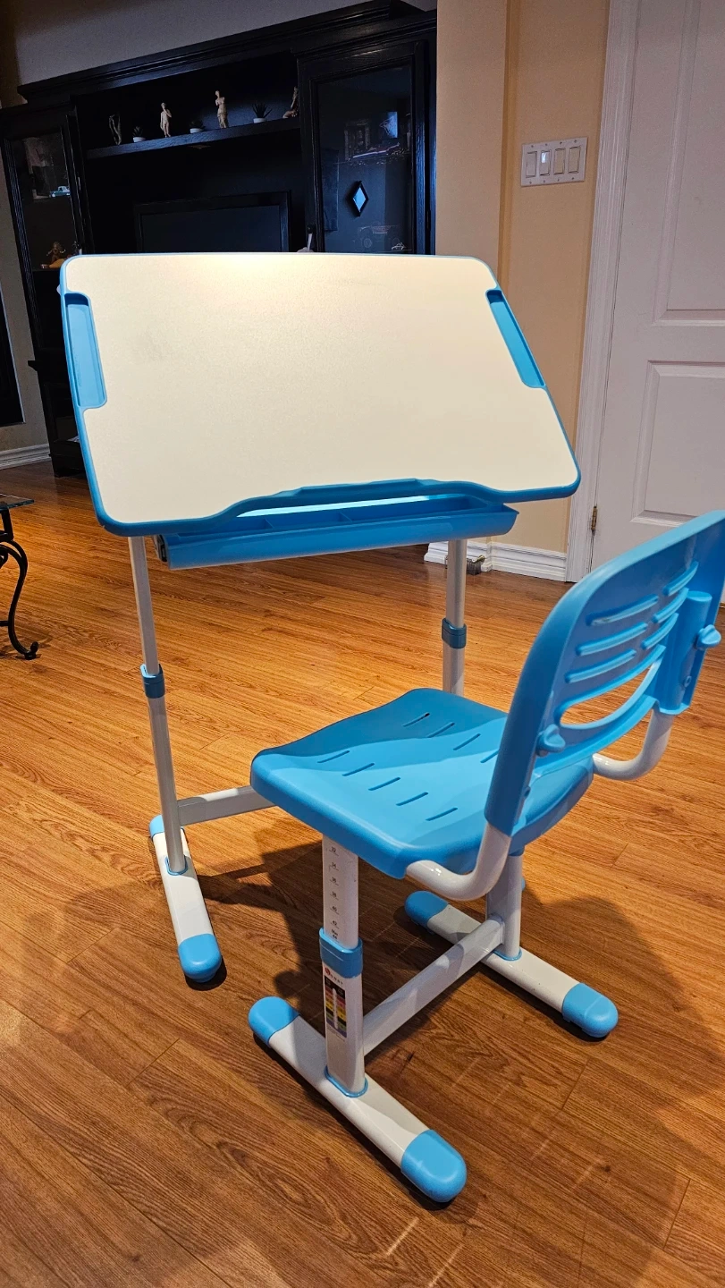 Adjustable Kids Desk and Chair Set - Blue & White