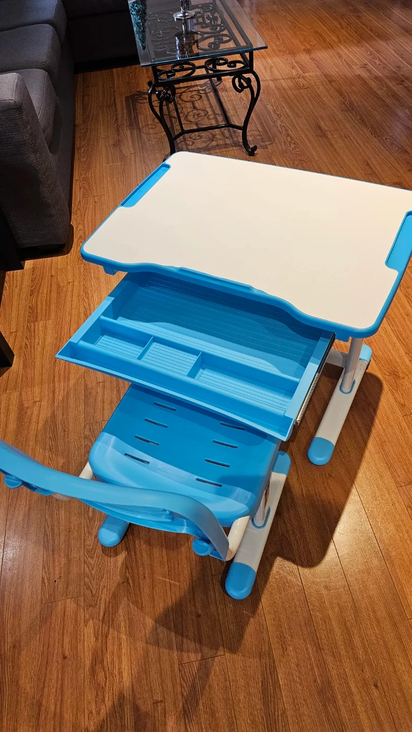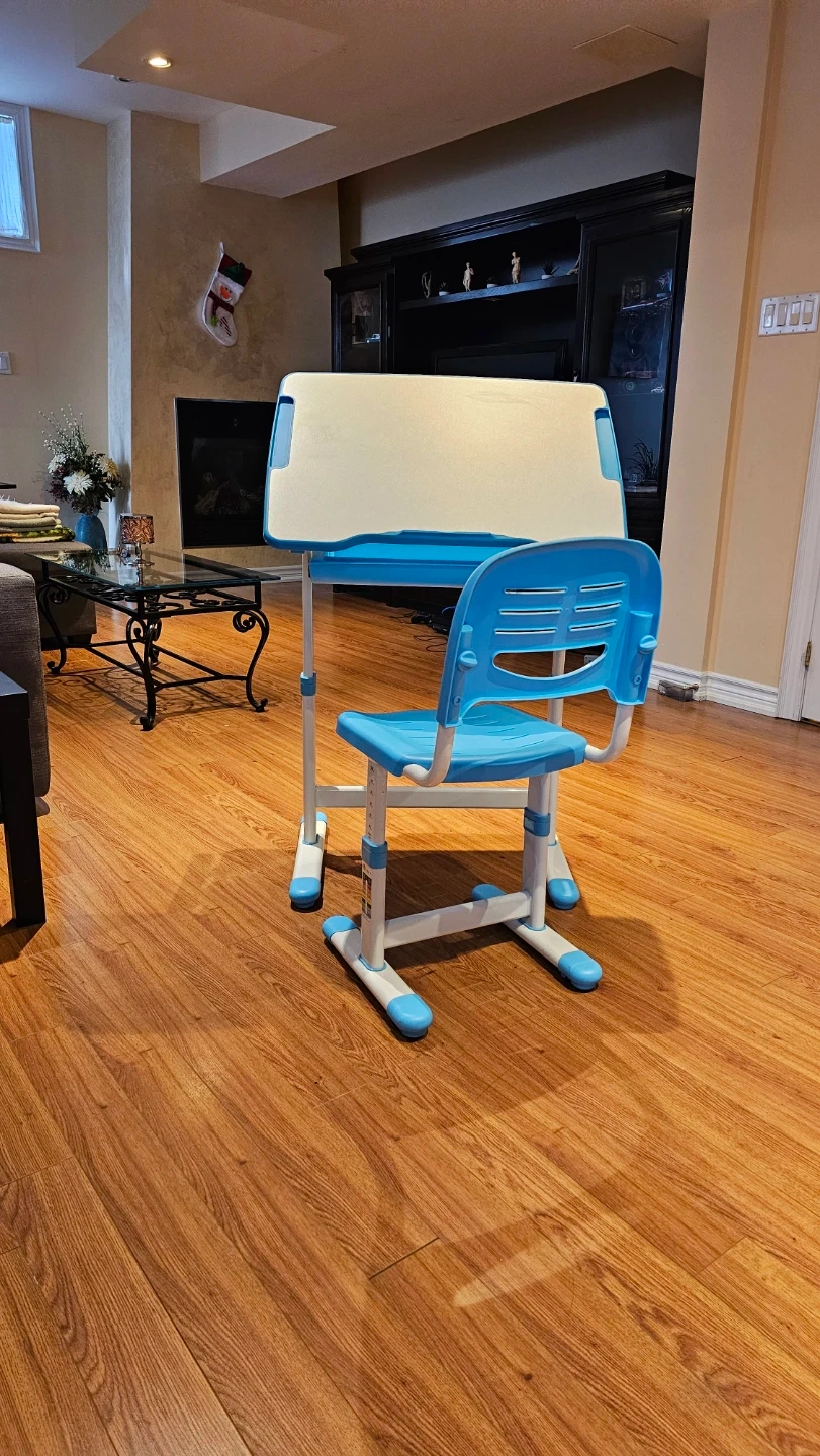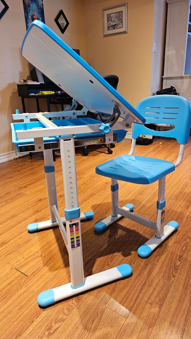 Adjustable Kids Desk and Chair Set - Blue & White