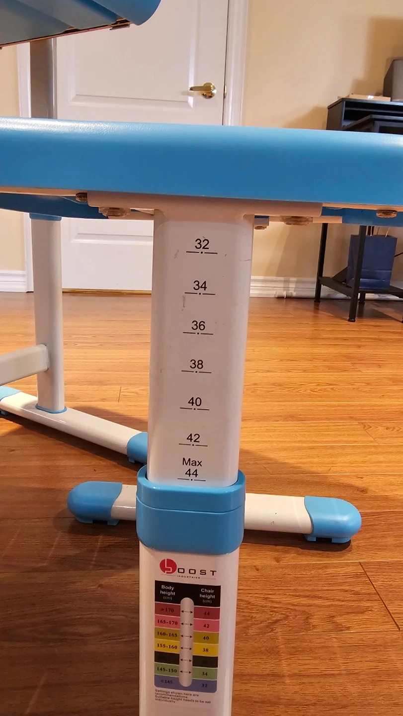 Selling an adjustable kids desk and chair set! This set is perfect for your growing child and can be adjusted as shown. (The measurement in the photo is the lowest setting for the desk and chair.) Near mint condition, rarely used. 40 is firm.