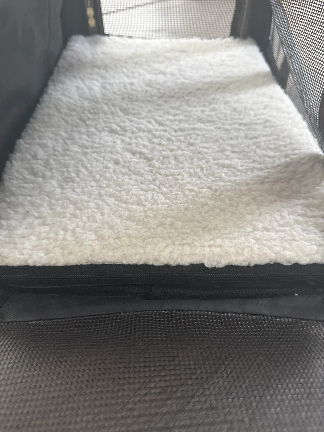 The Sherpa feels amazing! The lining can be unzipped and thrown in the wash and you cat out a pee pad inside the lining.