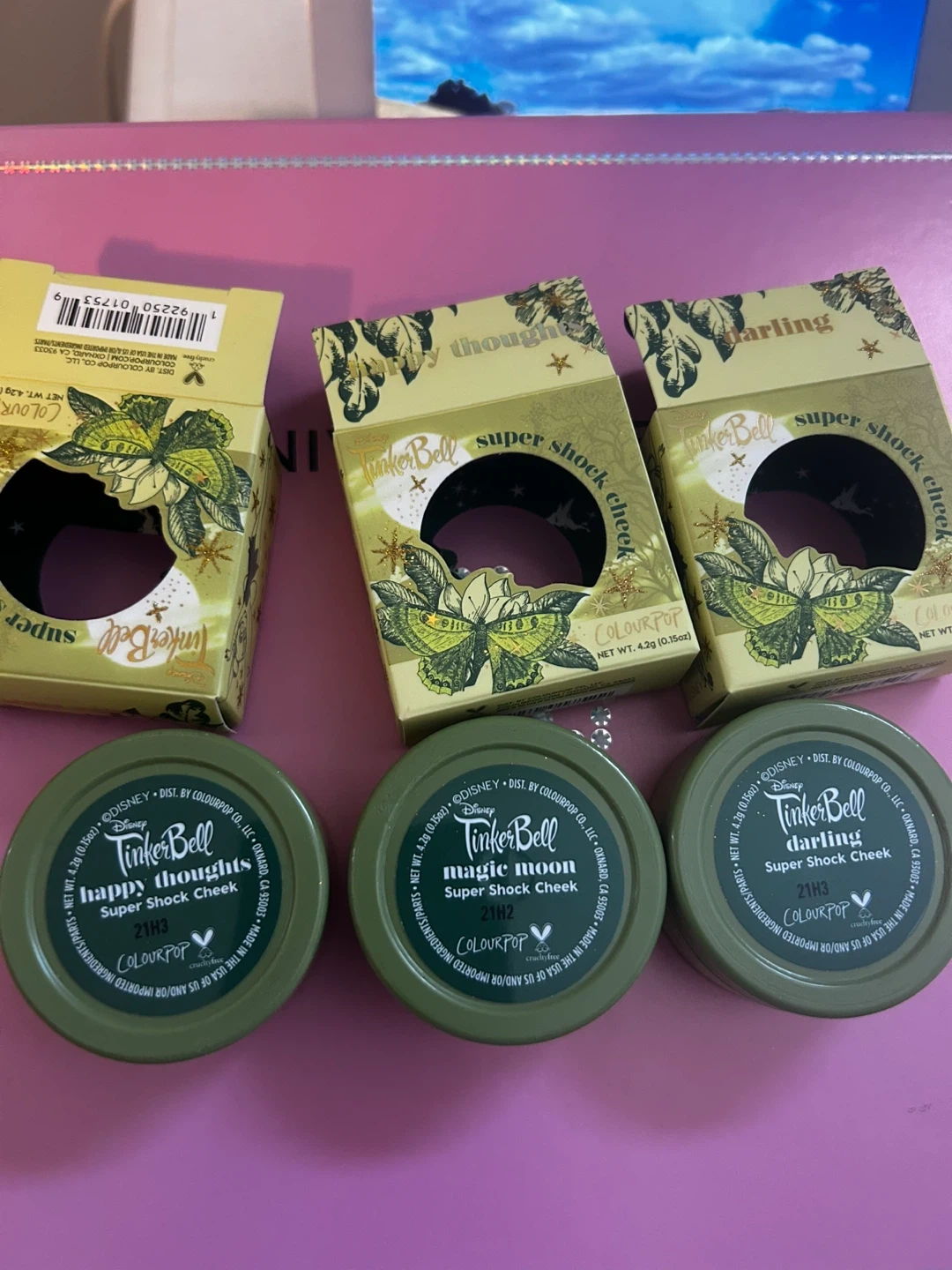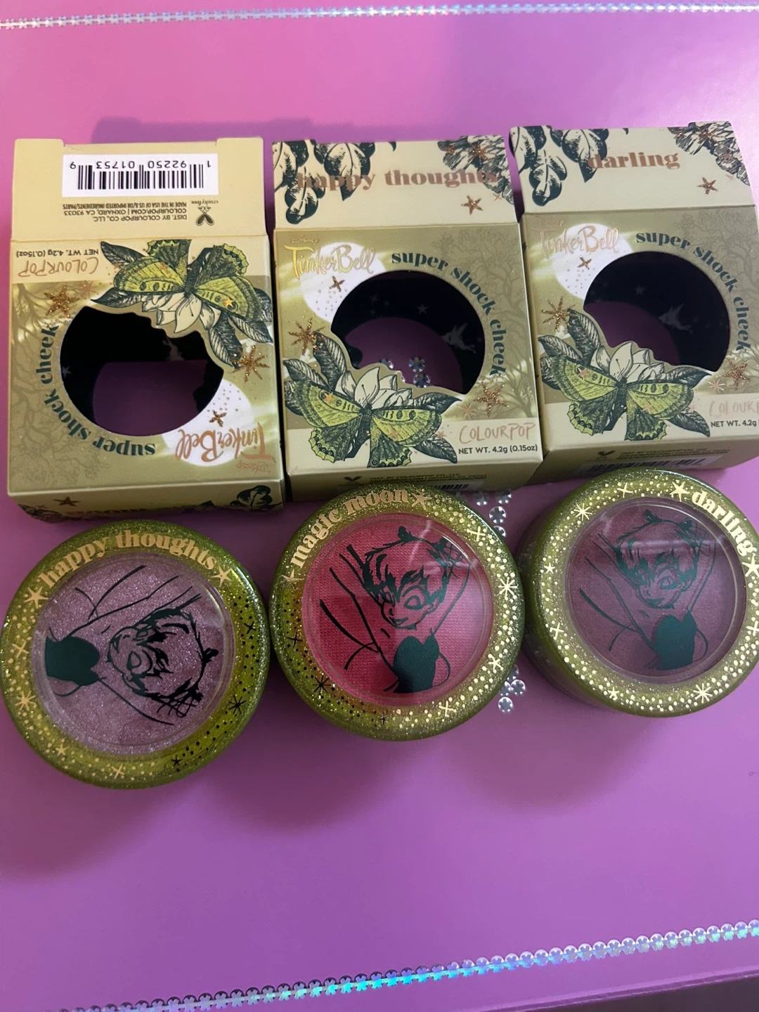 Selling a set of three ColourPop Super Shock Cheek blushes from the TinkerBell collection! Includes the shades Happy Thoughts, Magic Moon, and Darling. They're all brand new and come in their original boxes