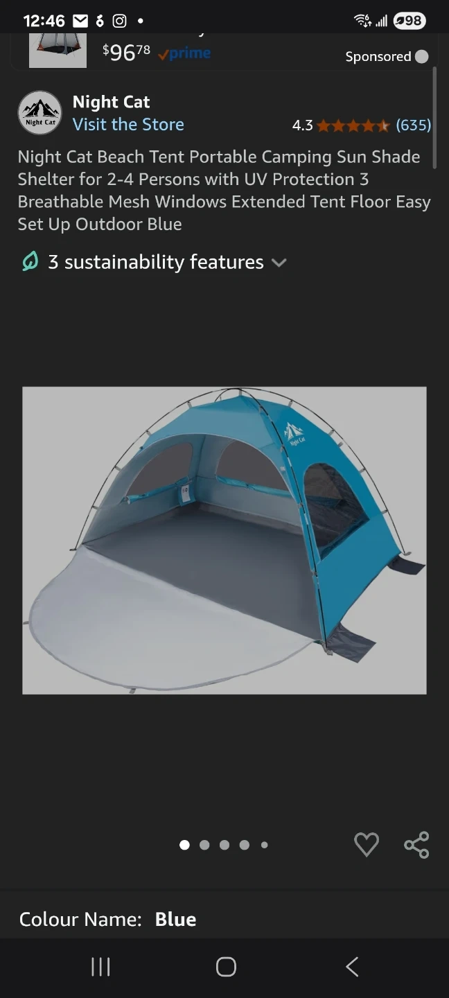 Night Cat Beach Tent Portable Camping Sun Shade Shelter for 2-4 Persons with UV Protection 3 Breathable Mesh Windows Extended Tent Floor Easy Set Up Outdoor Blue