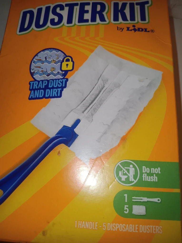 Selling a duster kit by Lidl! The box includes one handle and five disposable dusters. Great for trapping dust and dirt around the house. It's a handy tool to keep your space clean and tidy!
