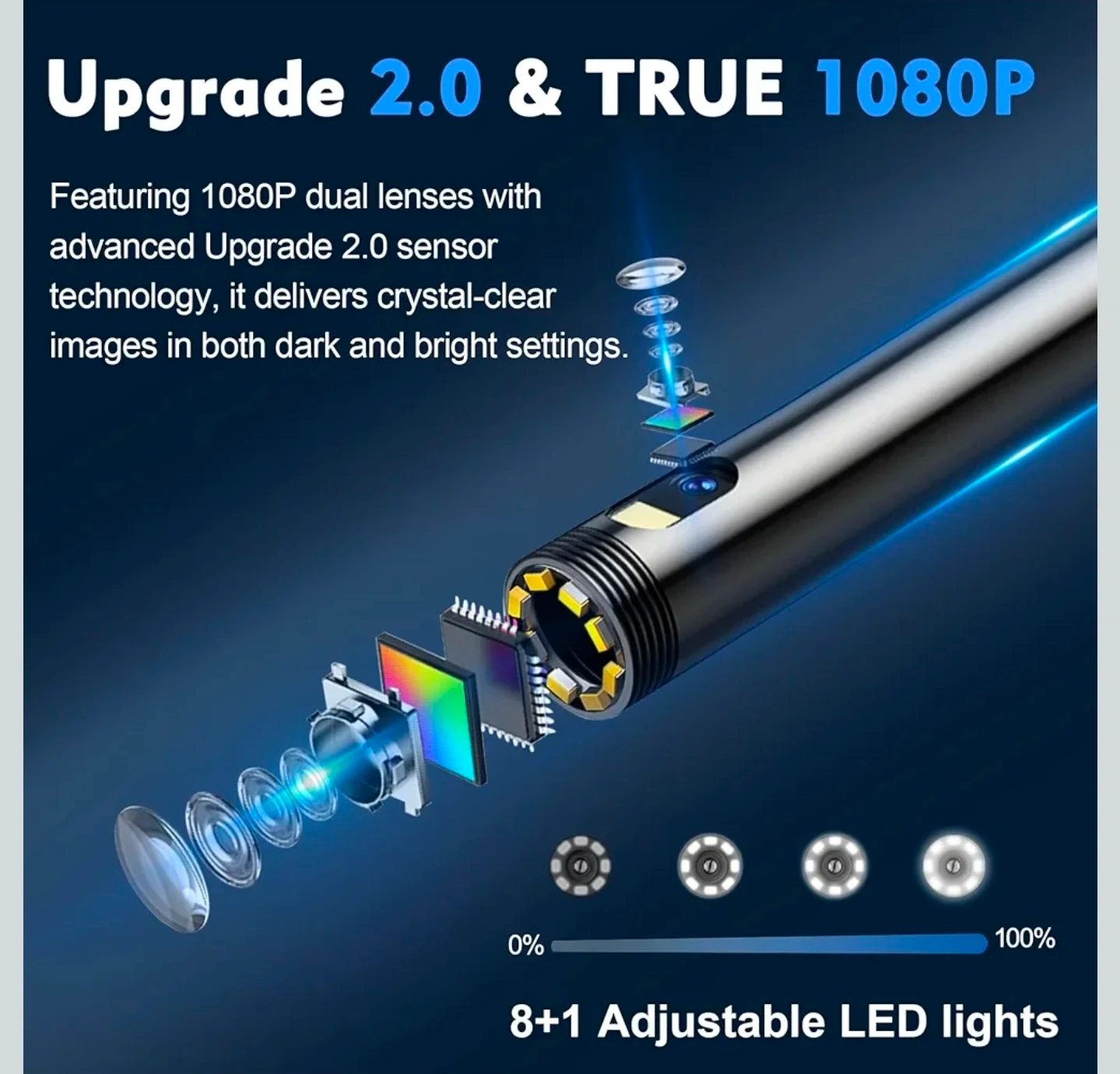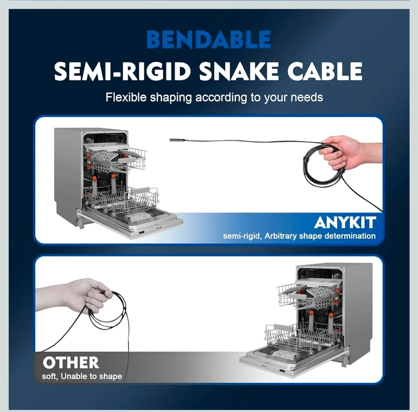 Endoscope Camera with Light, 4.3" Borescope with Photo/Video Function & Free(Built in 32GB Card), 16.4FT Semi-Rigid Snake Cable with IP67 Waterproof for Pipe, Engine & HVAC Inspection