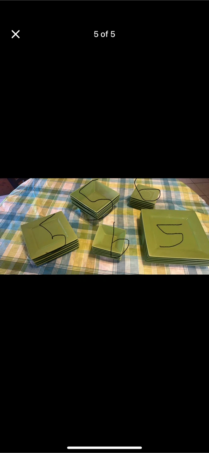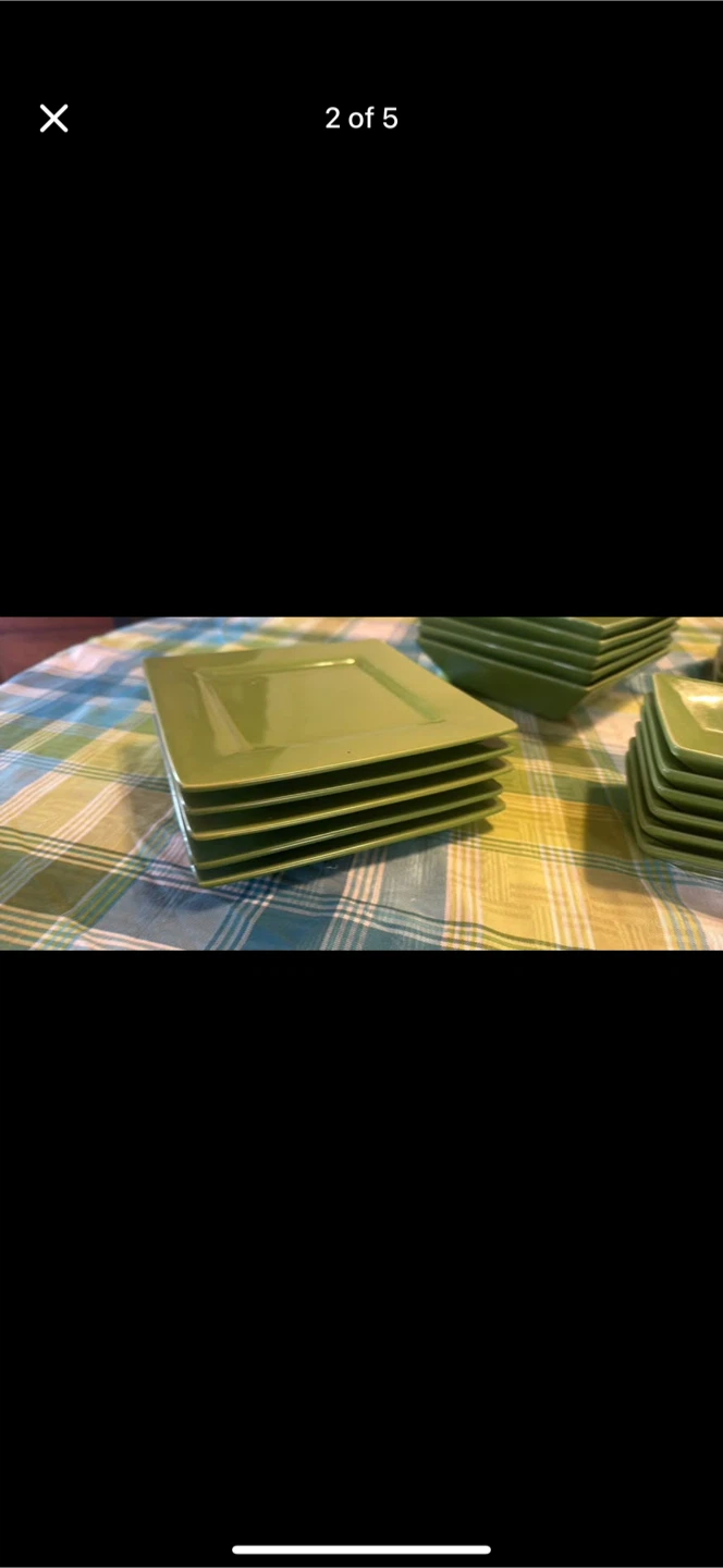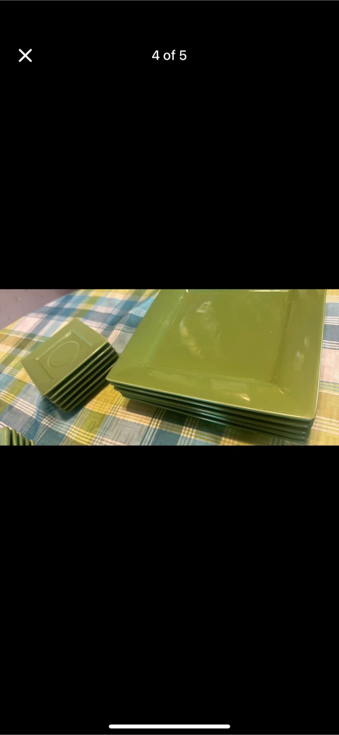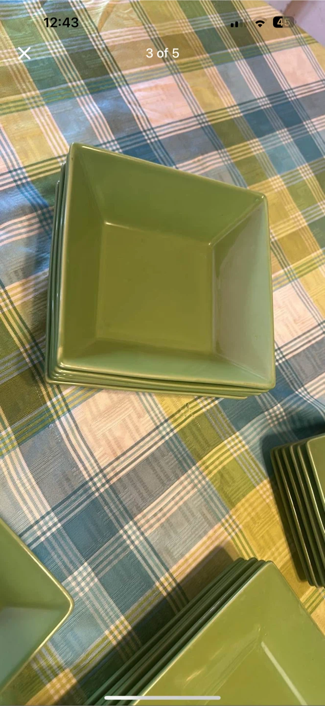 Selling a set of green square dinnerware. They are in great condition and ready for a new home. Perfect for everyday use or special occasions!
