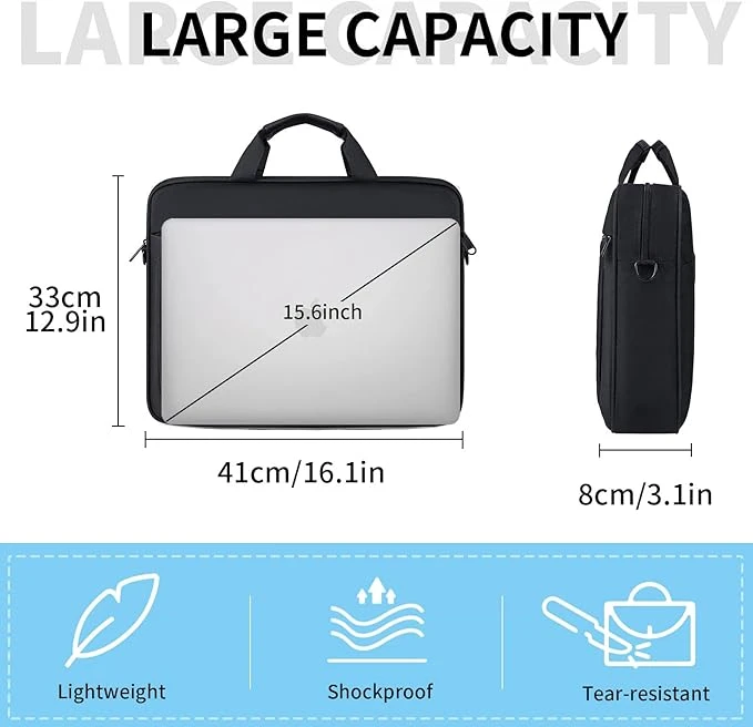 Laptop Bag 15.6 inch Slim Briefcase Large Laptop Case for Men Women Waterproof Computer Bags for Work Business Travel Black