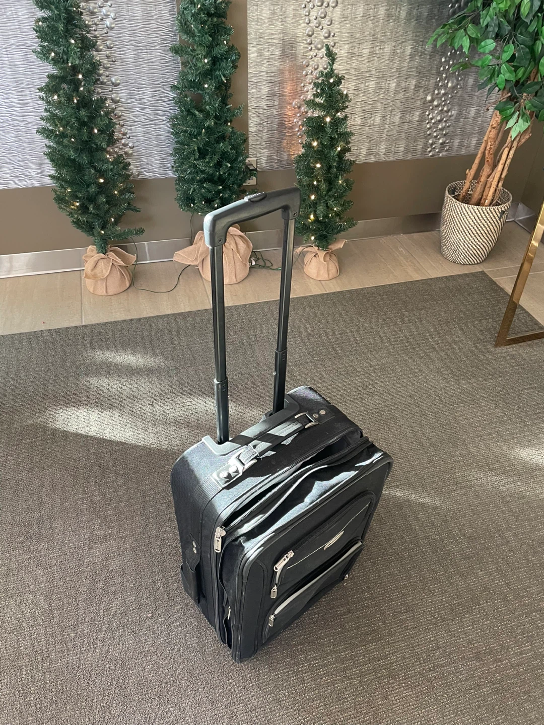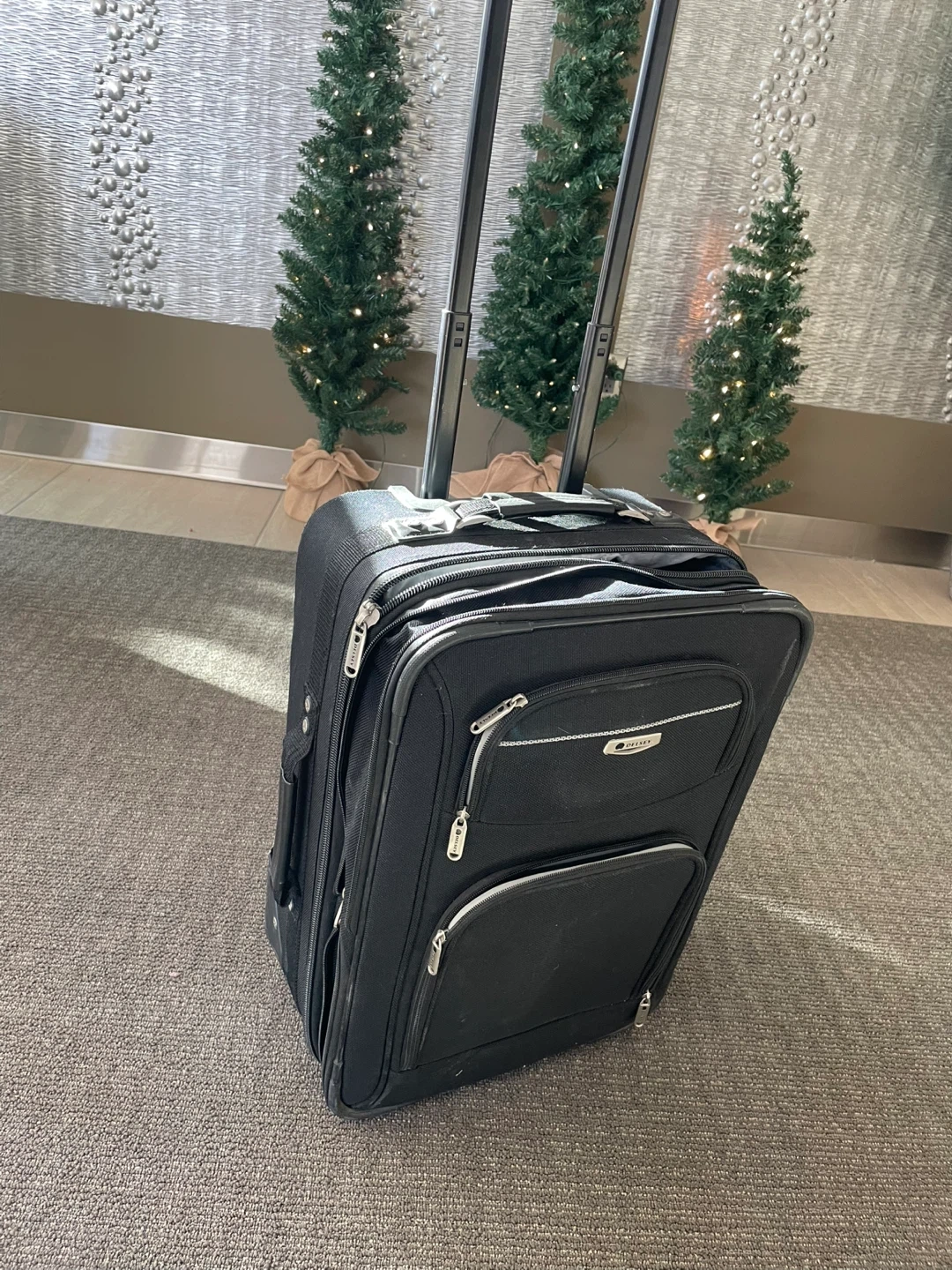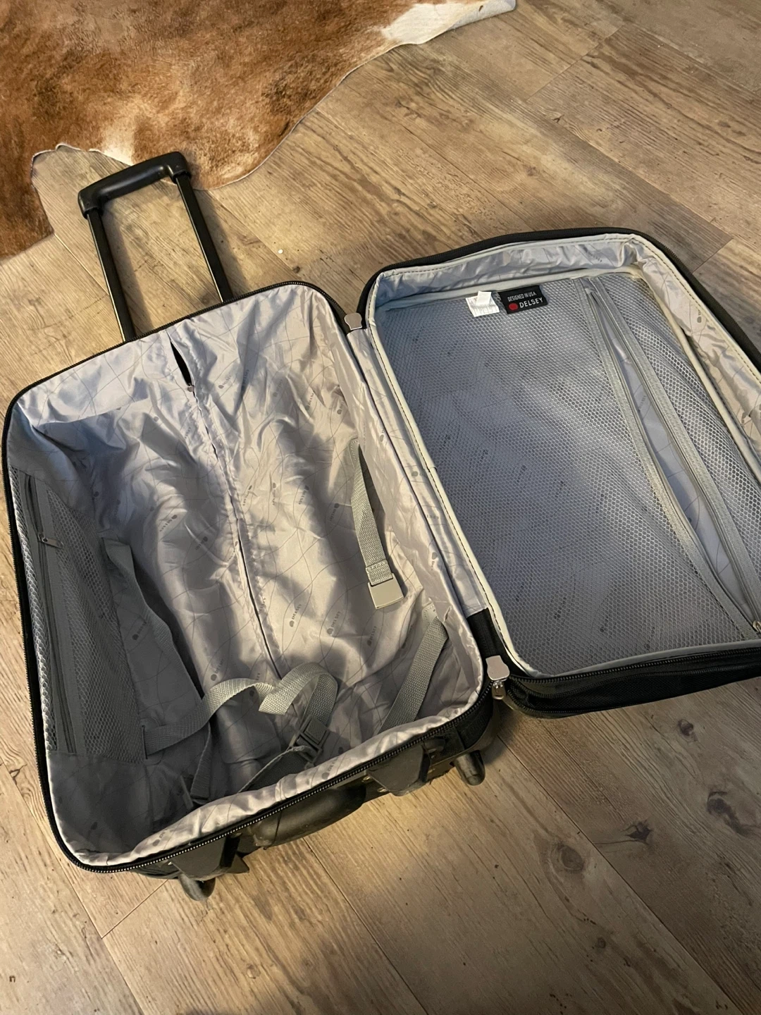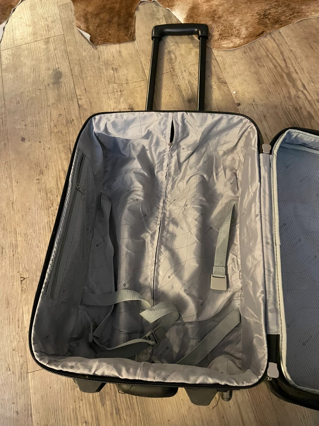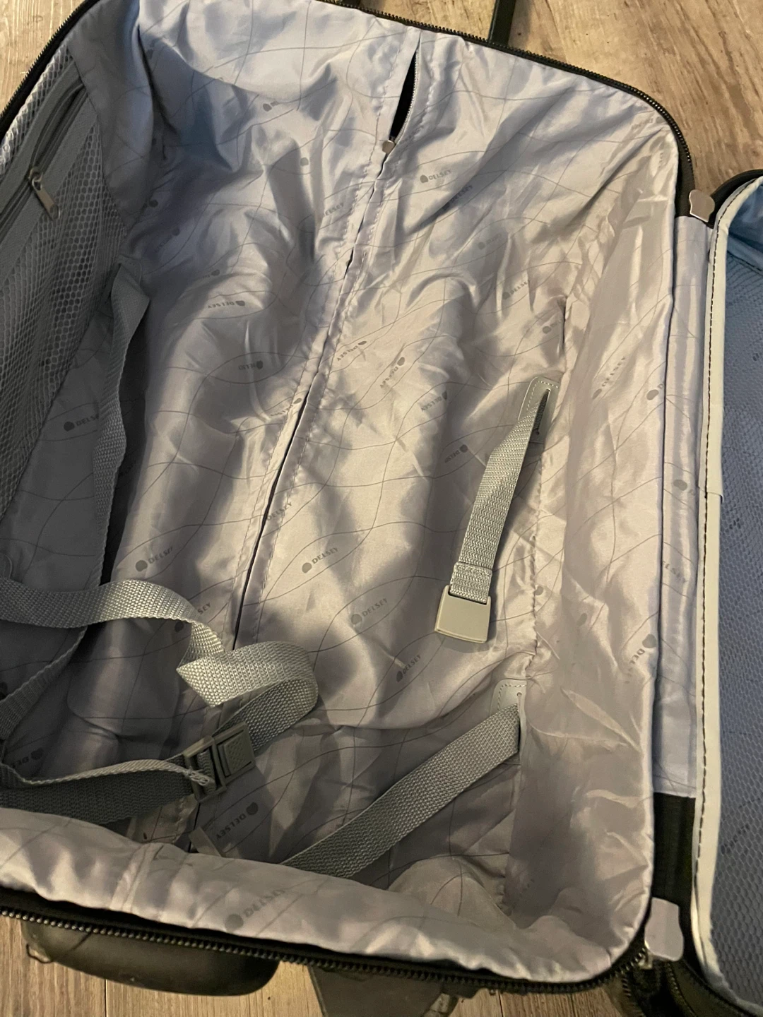 Selling a Delsey carry-on luggage in black. It's in good condition and ready for your next trip! The interior is spacious and includes straps to secure your belongings. Non smoking environment.