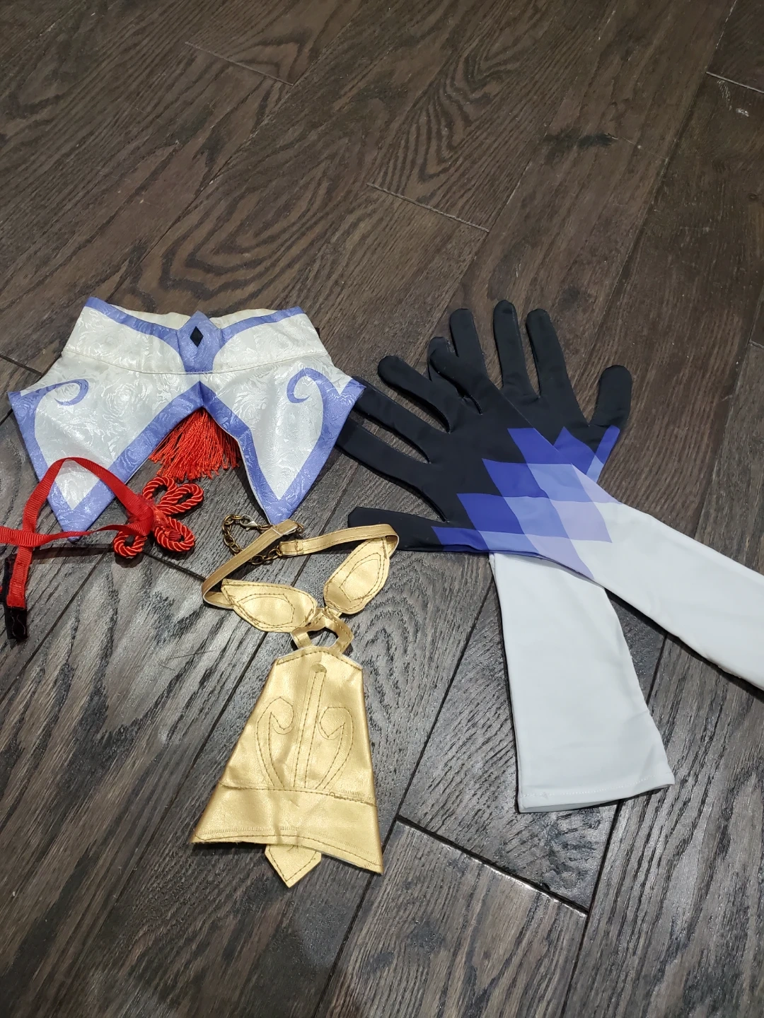 Selling a Genshin Impact cosplay set. It includes the top, pants, gloves, and other accessories as pictured. Great for any Genshin fan! Can add wig for extra $10. No horns