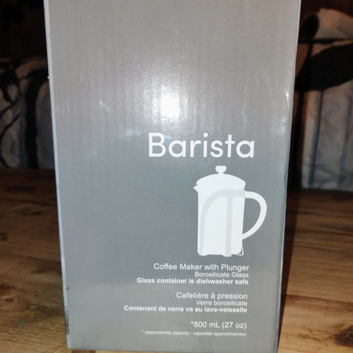 Selling a Barista coffee maker with a plunger! It's in excellent condition and comes with the original box. It can make up to 800 mL (27 oz) of coffee. The glass container is dishwasher safe, making cleanup a breeze!