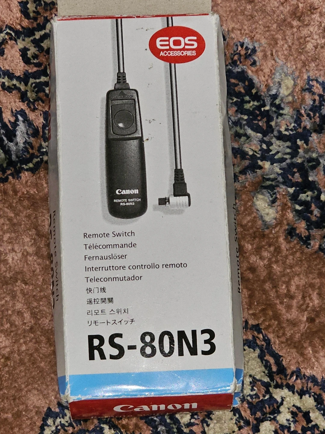Selling a Canon Remote Switch, model RS-80N3. It's in great condition and comes with the original box. Perfect for photographers looking to minimize camera shake!