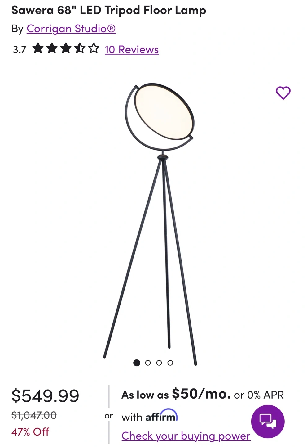 Selling a Corrigan Studio Sawera 68" LED Tripod Floor Lamp! It's a stylish and modern lighting solution for any room. Originally bought for $549.99, selling for 300 new in box