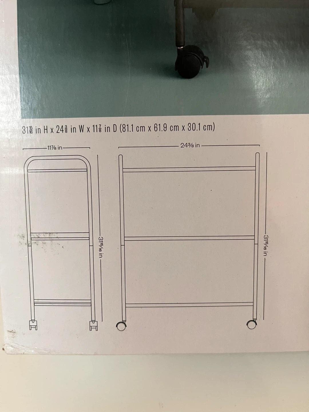 Selling a Room Essentials Wide 3-Tier Cart! It features a durable iron tube frame and locking casters for easy movement. It's designed to fit 11" Room Essentials storage bins and is easy to assemble. The dimensions are 31 7/8 in H x 24 3/8 in W x 11 7/8 in D (81.1 cm x 61.9 cm x 30.1 cm).