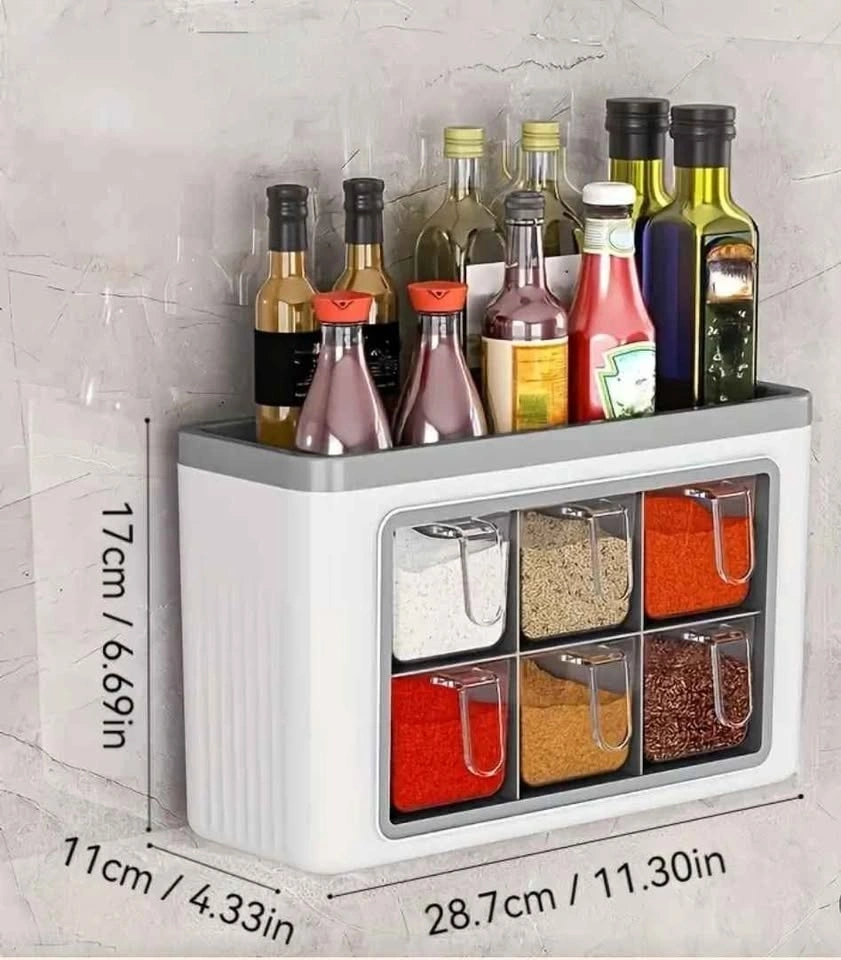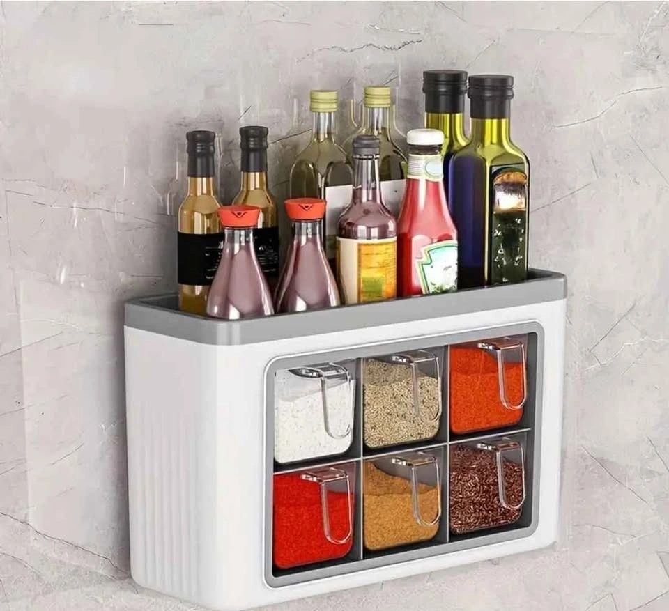 Space-Saving Wall-Mounted Kitchen Organizer - No-Drill Plastic Seasoning Rack, Versatile for Countertop or Wall, Integrated Storage for Condiments & Bottles