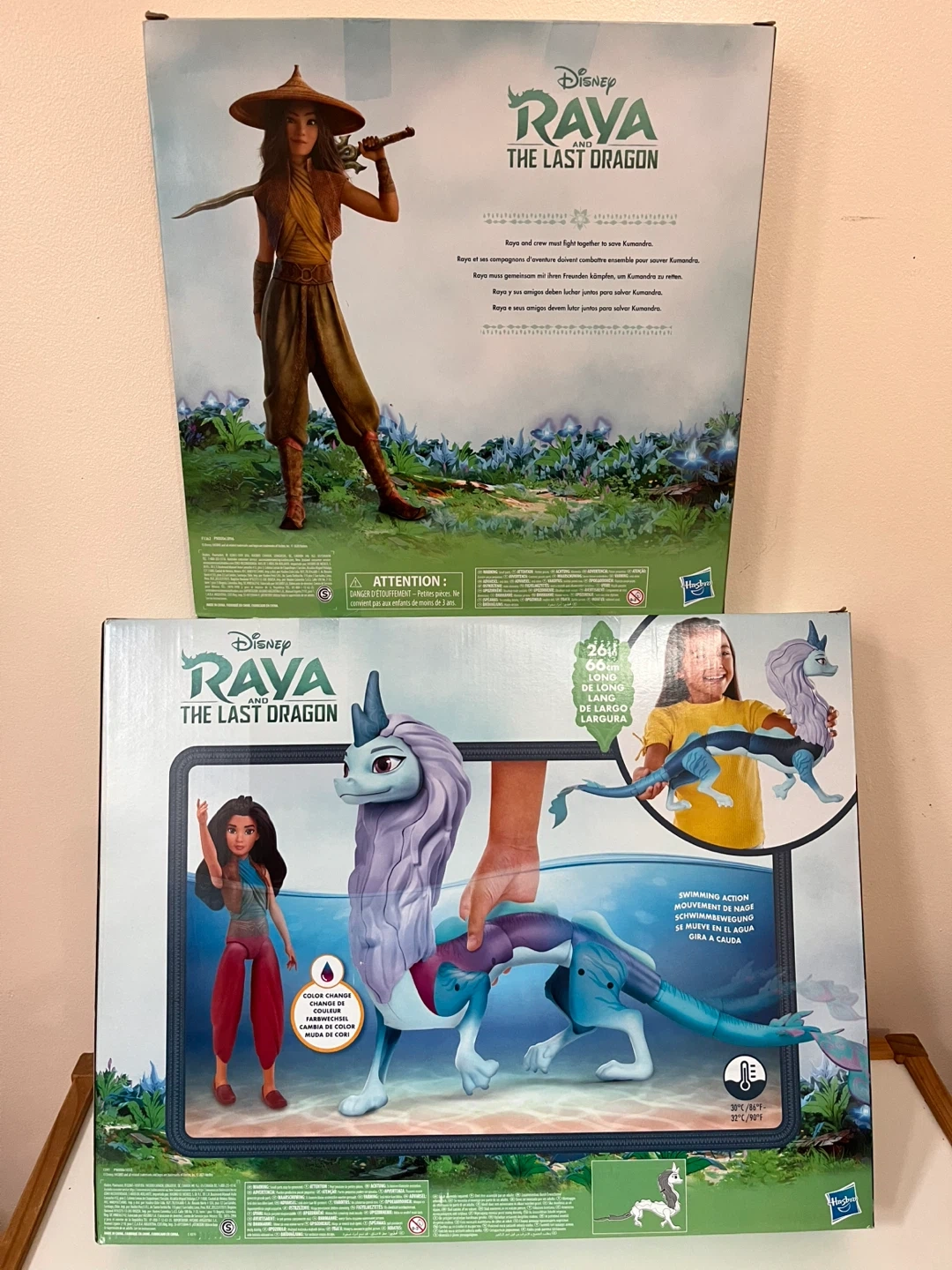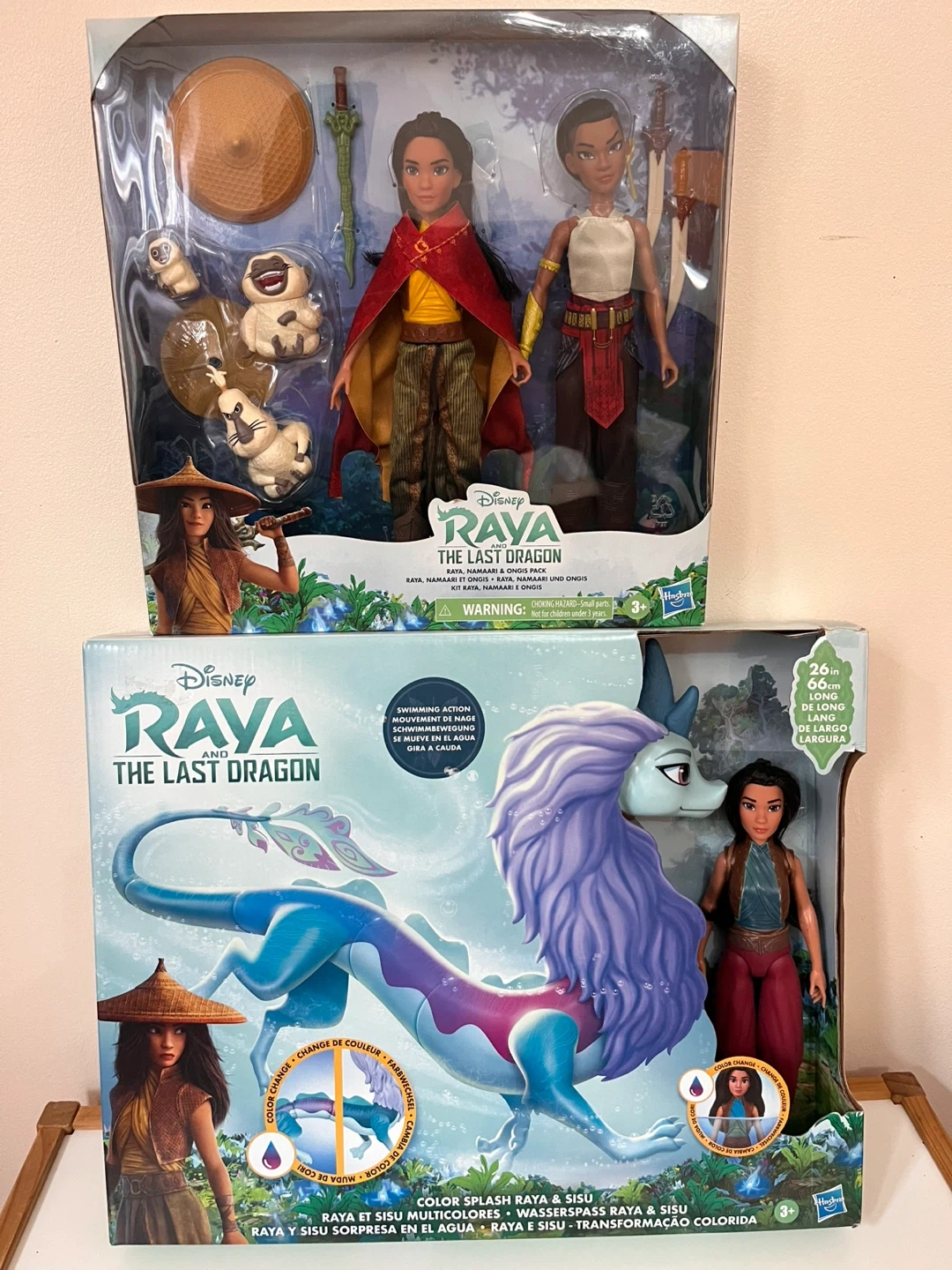 Selling two Raya and The Last Dragon doll sets! One set features Raya and Namaari dolls, while the other includes Raya and Sisu with color splash transformation. Both are in excellent condition and ready for a new adventure!