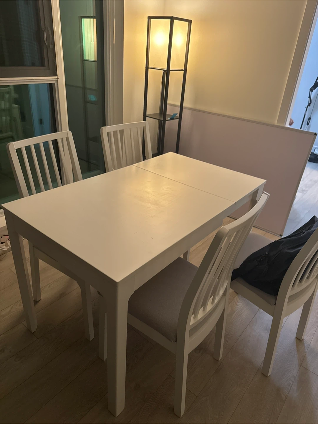 IKEA Extendable Dining Table set - White (with 4 chairs)