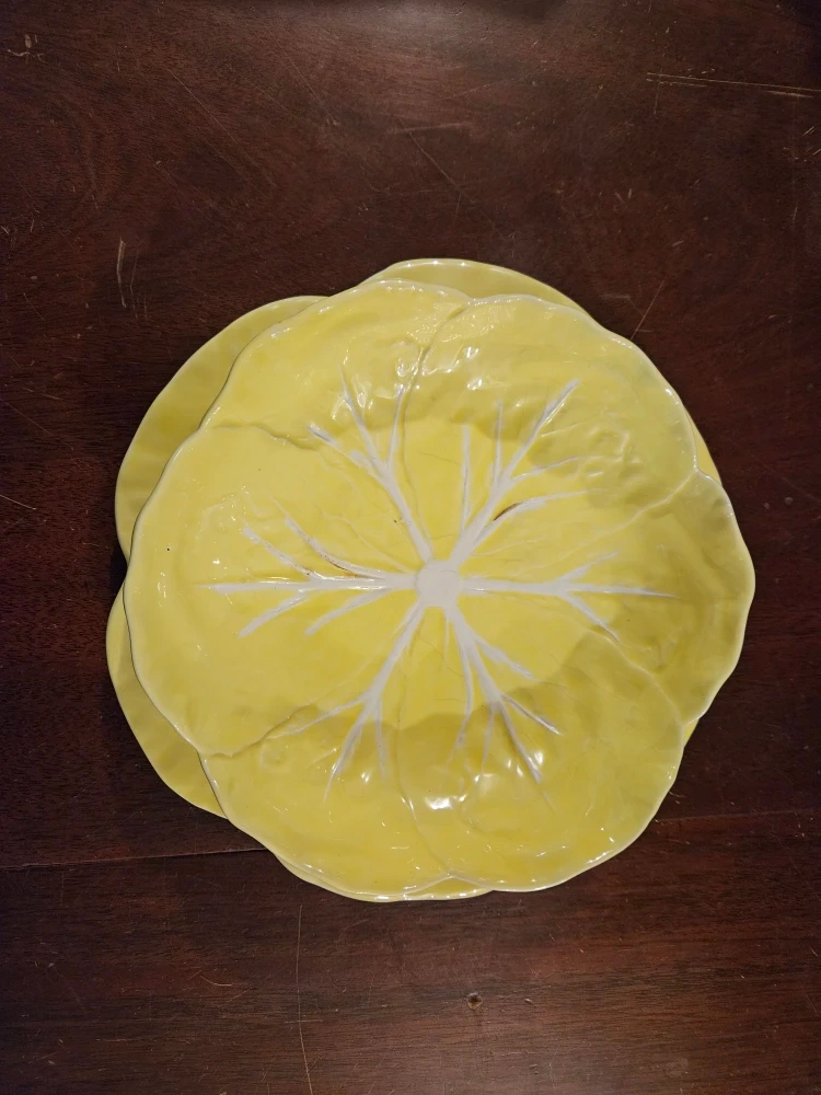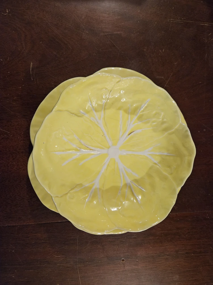 Selling a beautiful Bordallo Pinheiro cabbage place setting in yellow. It's in great condition and would be a lovely addition to any table setting! Setting includes matching plate and bowl.