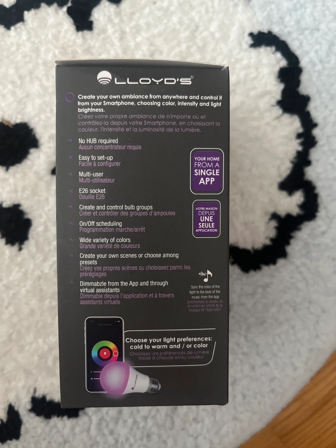 Selling a brand new Lloyd's Smart Bulb, model LC-1192, still in its original packaging! This LED bulb is 10W but provides the equivalent of a 60W incandescent bulb. It's compatible with Google Home and Alexa, making it easy to automate your home lighting. The bulb produces 800 lumens and has a lifespan of 25,000 hours. It also allows you to create your own ambiance from anywhere and control it from your smartphone