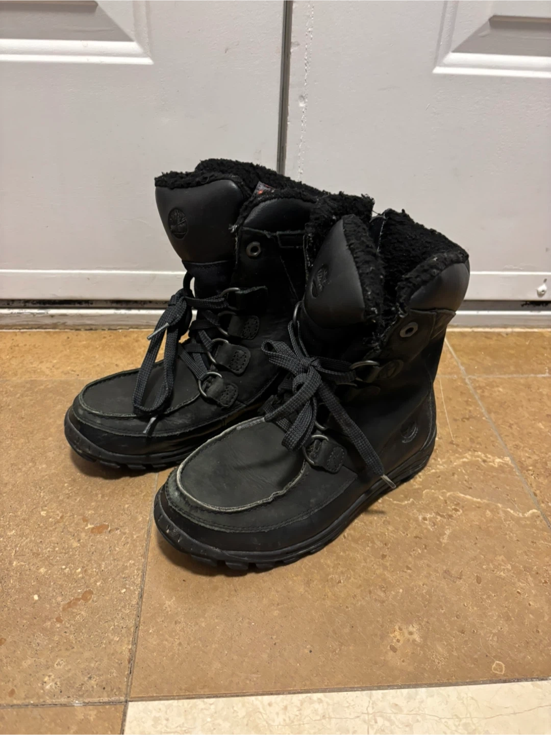 Selling a pair of black Keen rain / light snow boots and a pair of black Timberland winter boots.