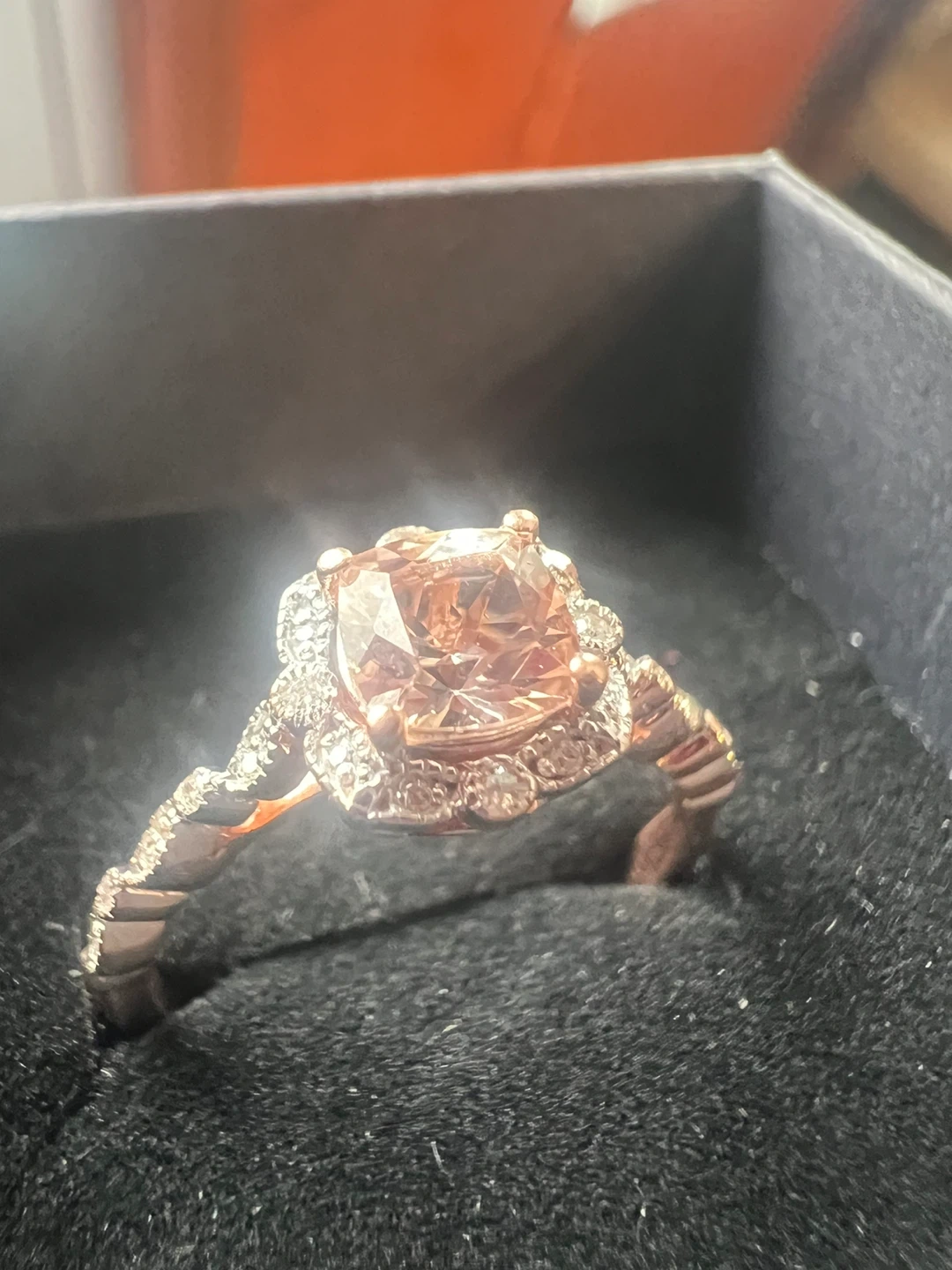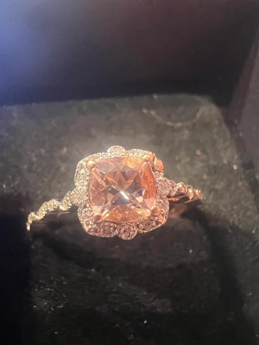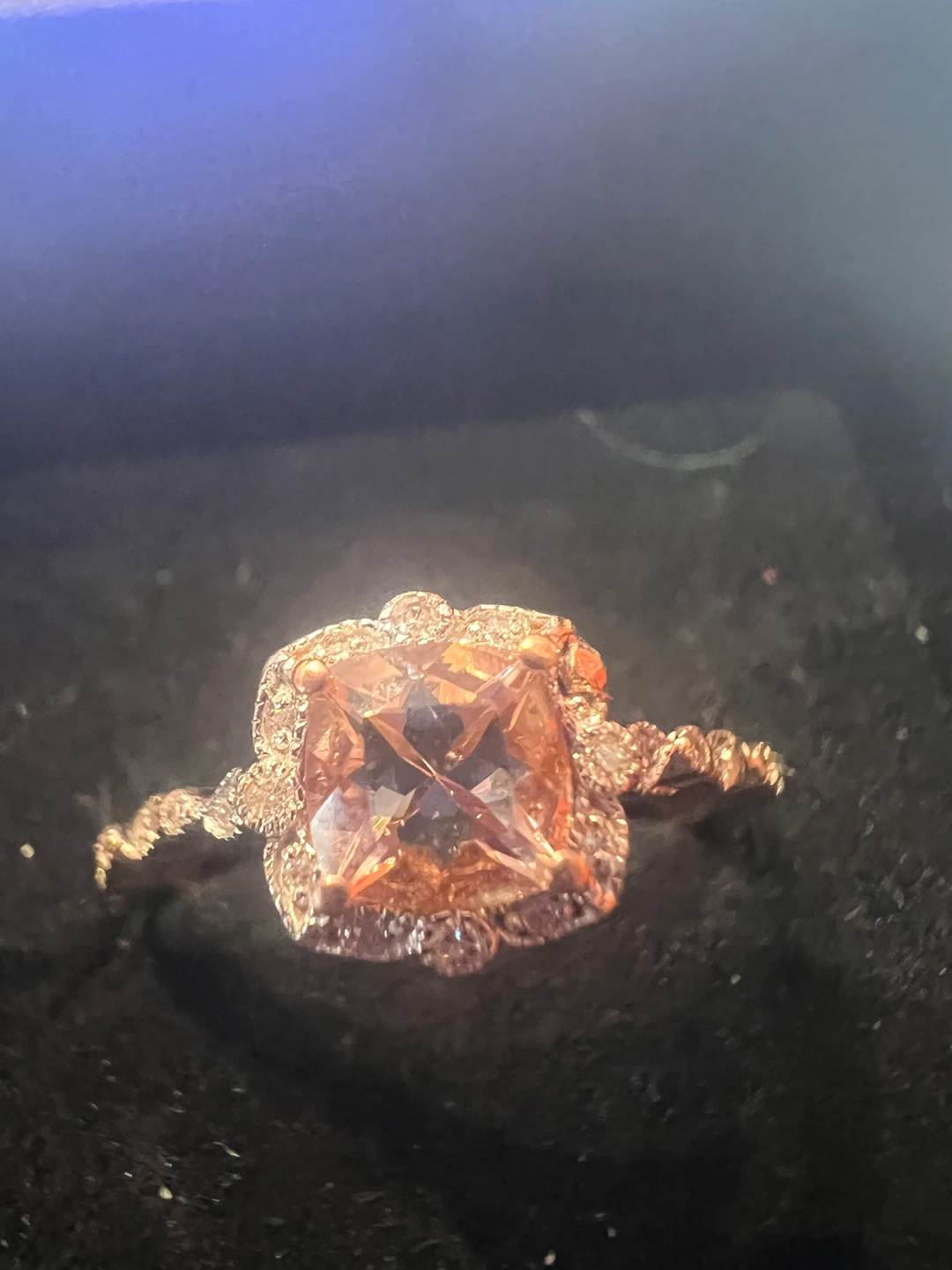 Selling a beautiful 10 k rose gold ring with morganite and diamonds .It's in great condition and comes with the box