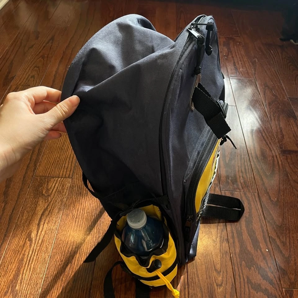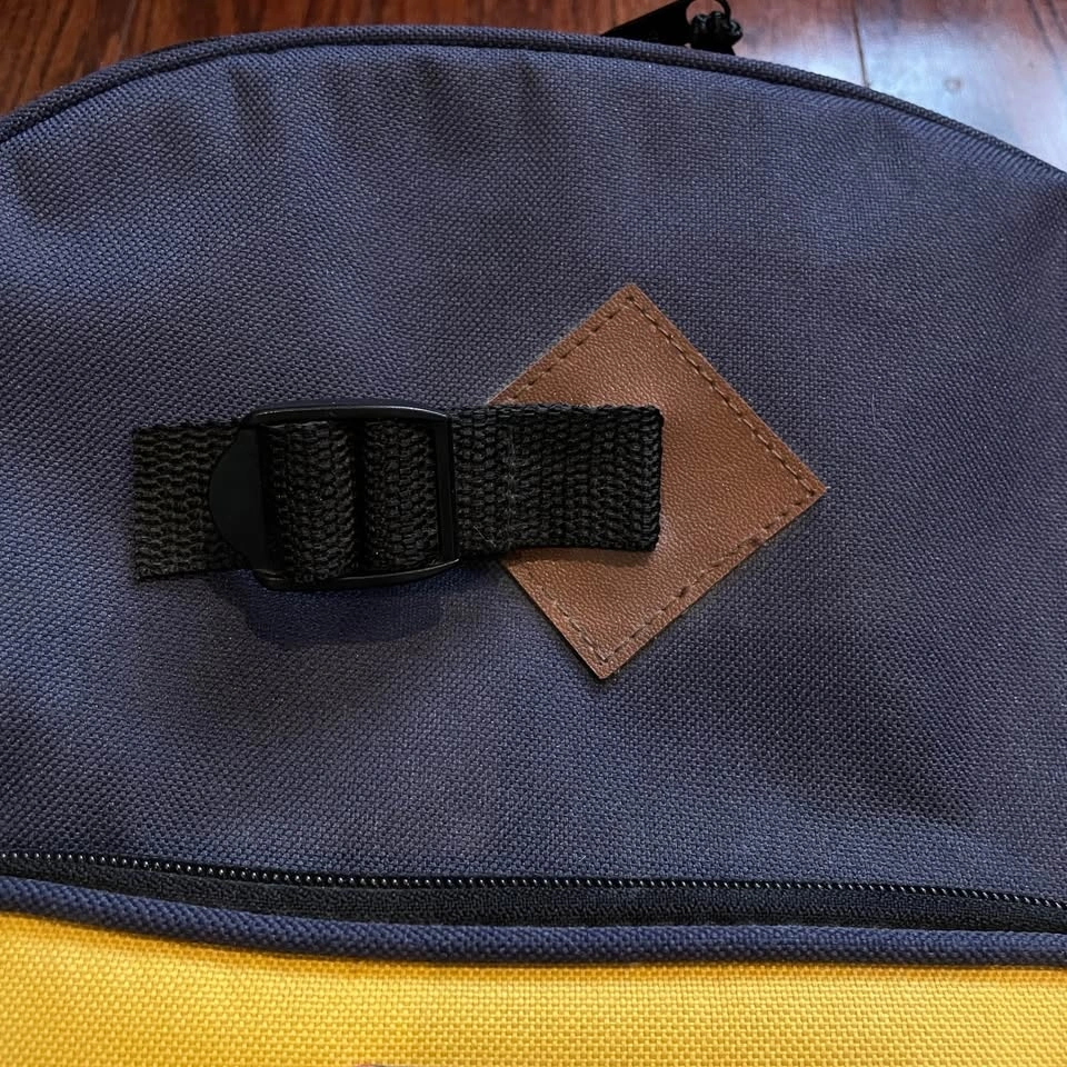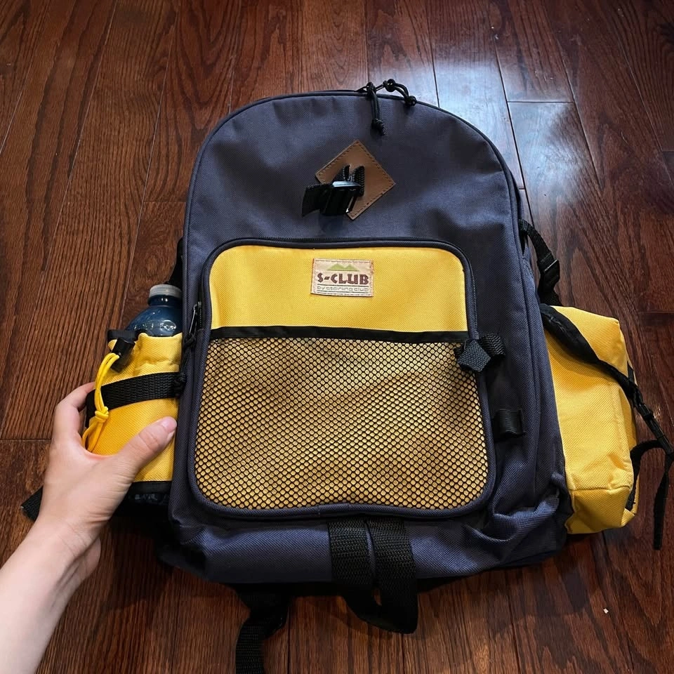 Stylish and functional, the backpack features a navy and yellow design. Perfect for daily use, this bag combines durability with a retro look.