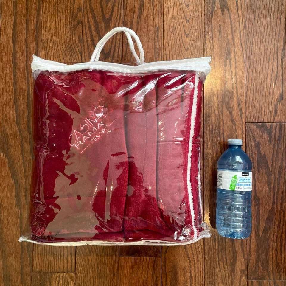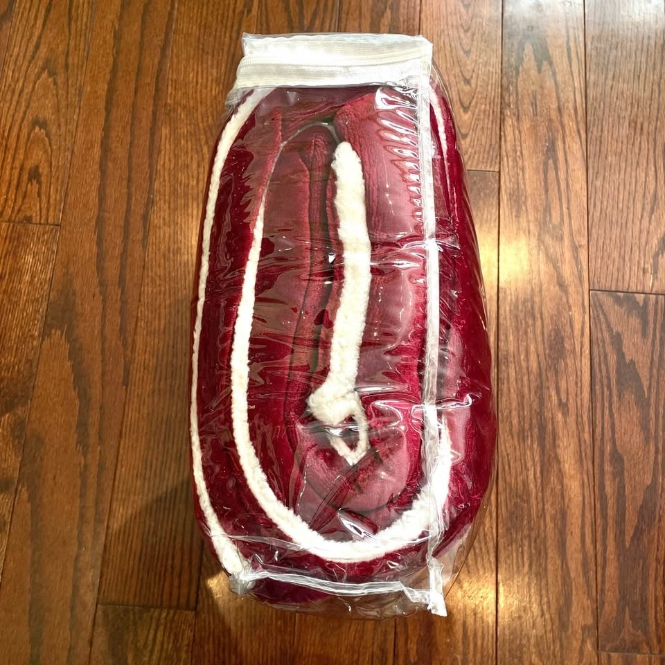 Size: Never opened, so the exact size is unknown. Please estimate based on the folded size shown in the photos inside the vinyl bag.