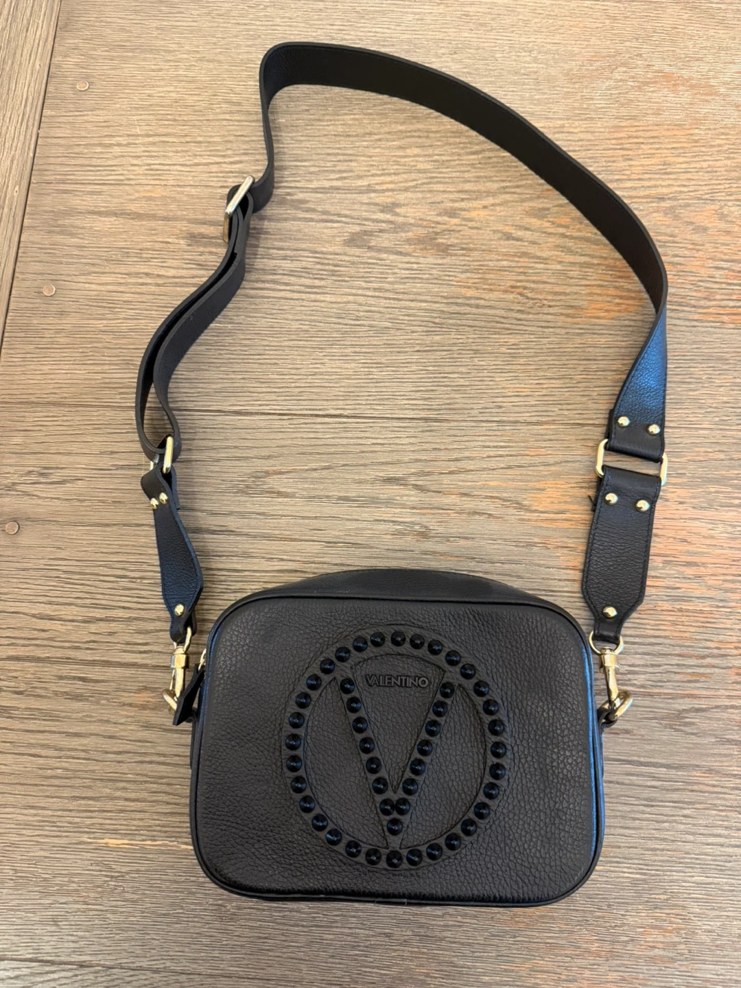 Selling a Valentino crossbody bag in black leather. This stylish bag features the iconic Valentino logo with studded detailing. It's perfect for adding a touch of luxury to any outfit!