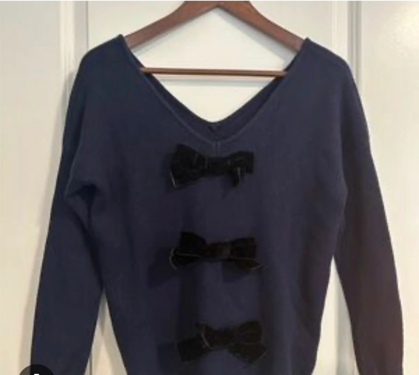 Molly Bracken Navy Blue V-Neck Bow Sweater - xs/small