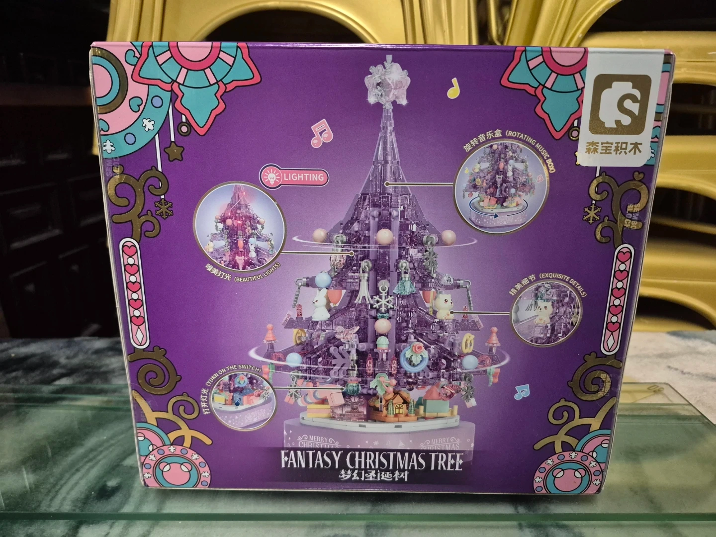Selling a brand new Sembo Block Fantasy Christmas Tree! It's still in its original box and ready to be assembled. This set features rotating music and beautiful lights, making it a delightful holiday decoration. The box includes exquisite details and the model number is 605029