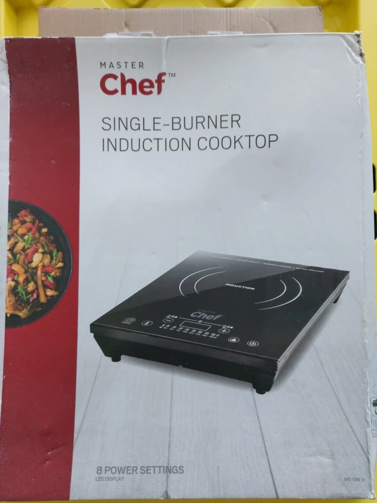 Selling a Master Chef single-burner induction cooktop. It has 8 power settings and an LED display. The box is included!