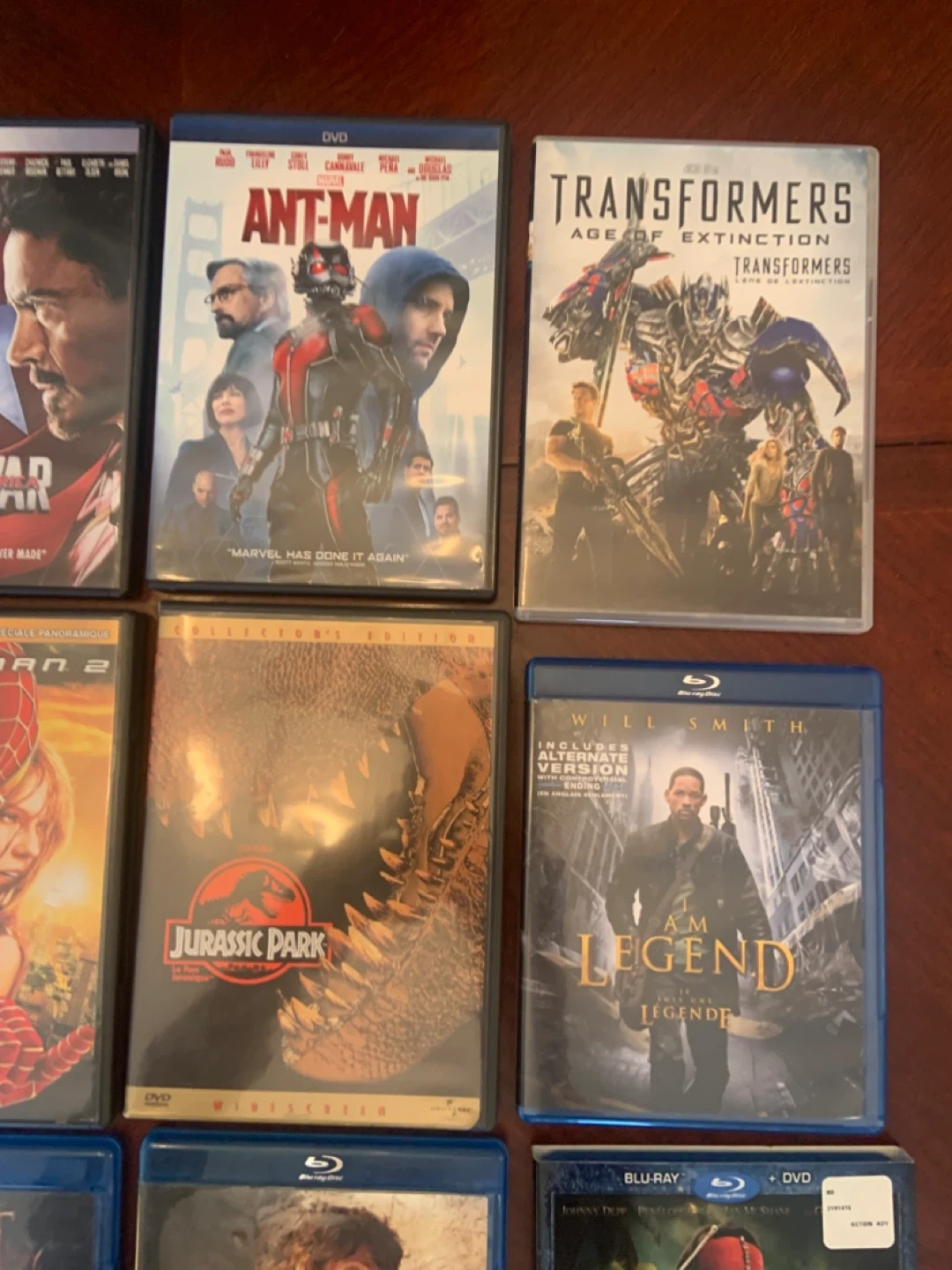 • Main Intersections are HURONTARIO•STEELES just before downtown Brampton • MINT CONDITION ! • 13 DVDS•BLU-RAY DISCS • The Avengers • Marvel Civil War • Ant-Man • The Last Stand • Spider- Man 2 • Jurassic Park • I am Legend ( Blu-ray Disc ) • Terminator 2 ( Blu-Ray Disc ) • Hobbit ( The Desolation of Smug Blu-Ray disc ) • The Hobbit ( An unexpected Journey Blu-Ray disc ) • Pirates of the Caribbean ( On straight Tides• 2 disc Combo Pack Blu-Ray disc ) • Batman Begins ( “ “ ) • The Dark Knight Rises (“ “ ) • The Dark Knight (“ “ ) • $5 each cash only
