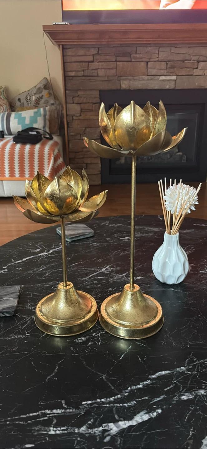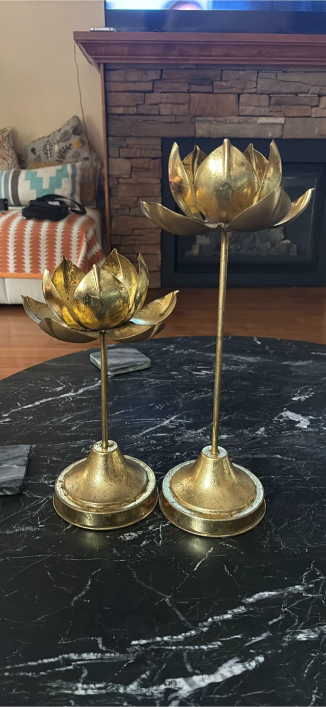 1 / 21 / 2Buy & SellGold Lotus Flower Candle HoldersGold Lotus Flower Candle Holders$17Selling a set of two gold lotus flower candle holders. They would be a beautiful addition to any room!WHERE TO MEETYorkson Creek middle schoolView MapSELLERverifiedSurabhiYorkson690 reviews0 chats·0 favorites·21 viewsSEND CHAT TO SELLERHi Surabhi! I’m interested in your listing.Hi Surabhi! I’m interested in your listing.Get the Karrot app to chatSign In to chat