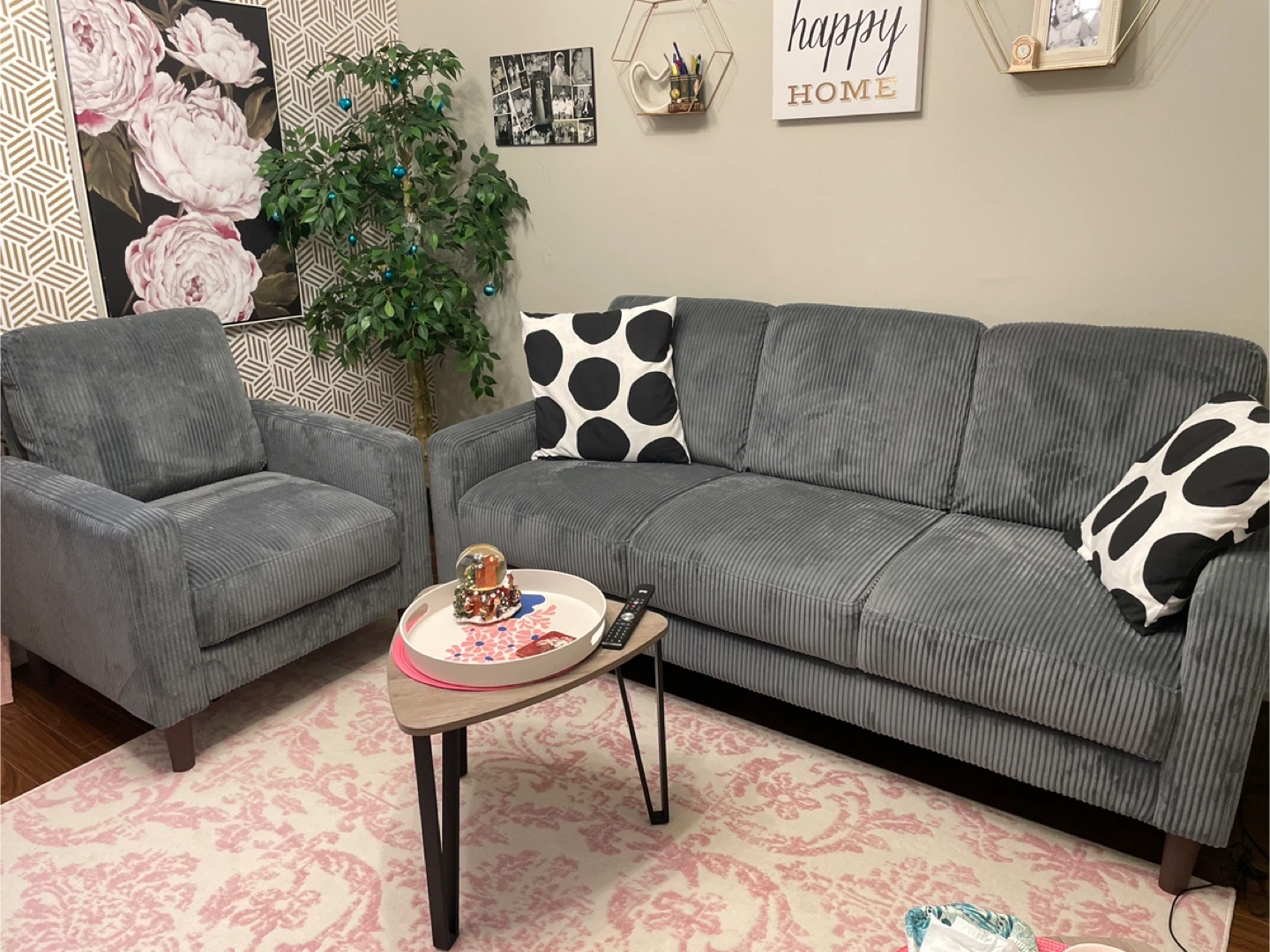 Sofa& chair grey velvety Silk BrandNew moving sale