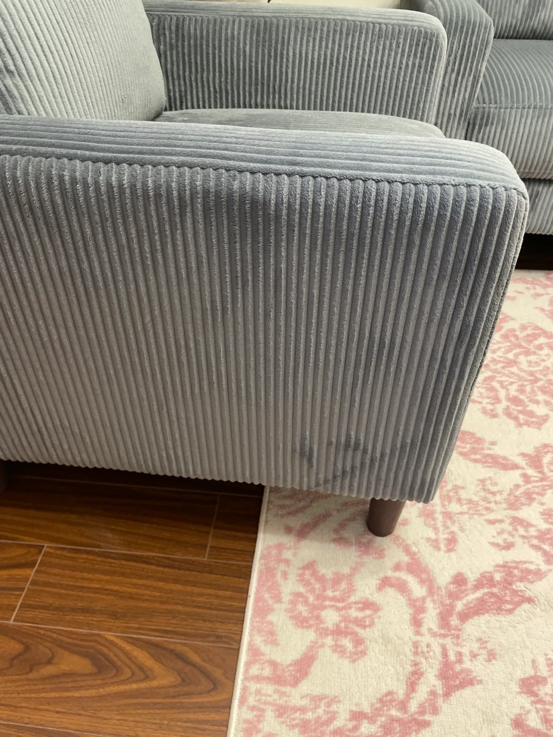 This beautiful sofa& armchair comfy elegant colour blueish grey sofy BrandNew, Never been used and ready for a new home can’t find any furniture store with this price sofa and chair , Colour differ in the Picture because it’s woven