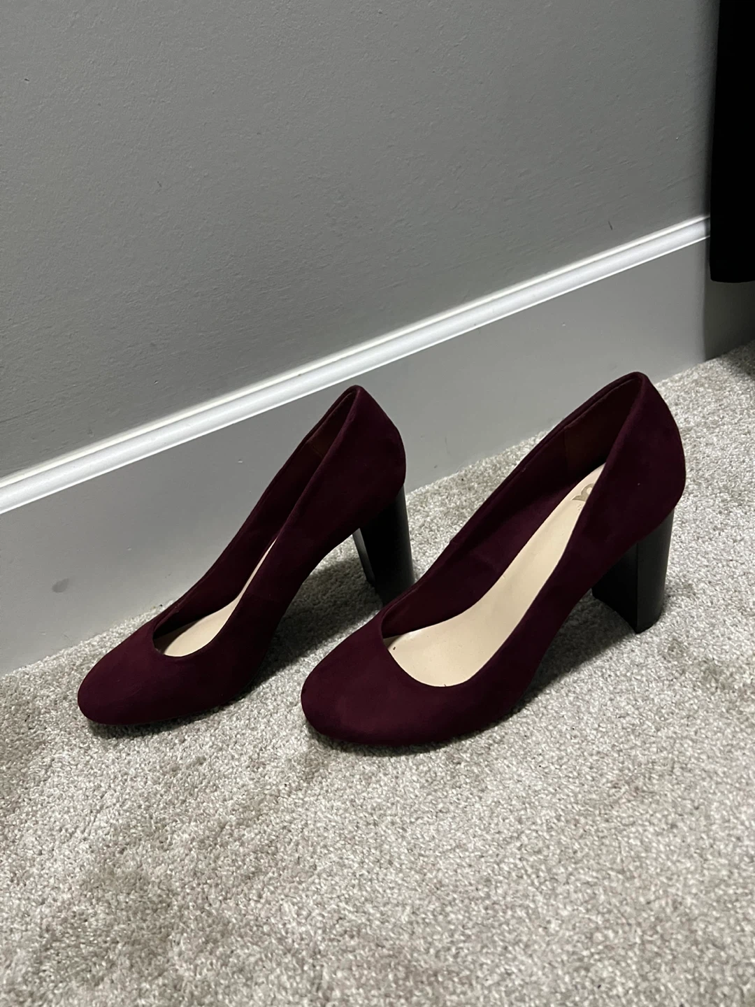 Selling a pair of new burgundy heels from Fergie's Fergalicious line! They've never been worn and ready for a new home