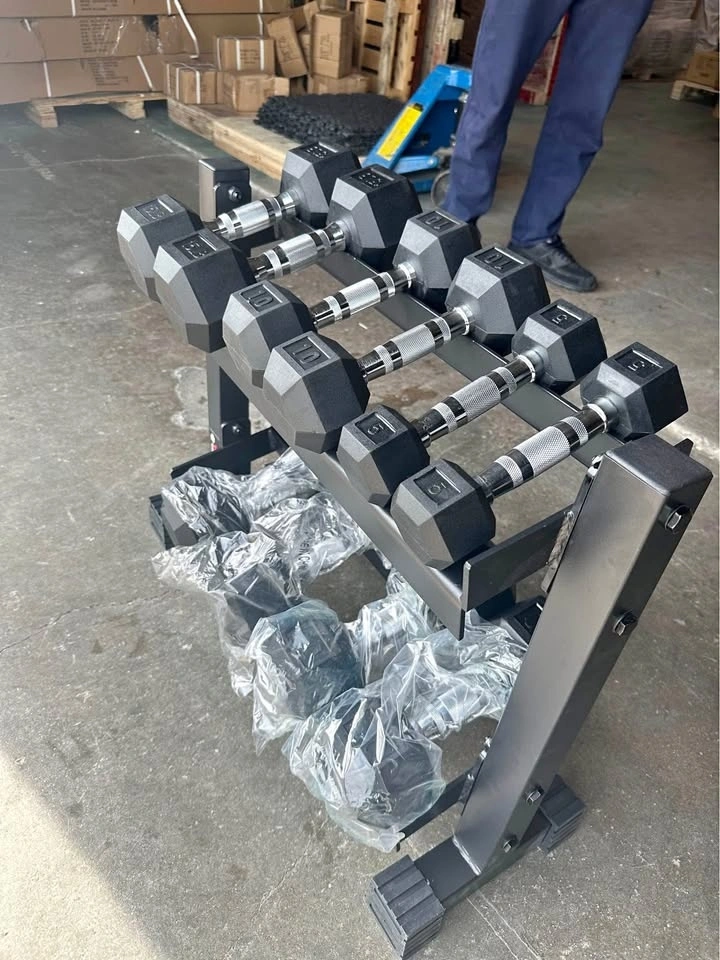 β’ Rubber-coated dumbbells protect floors and reduce noise