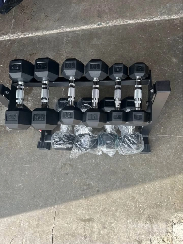 Build your perfect home gym setup with this brand new York 5β25 lb rubber hex dumbbell set and York 2-tier dumbbell rack β high-quality, compact, and built to last!