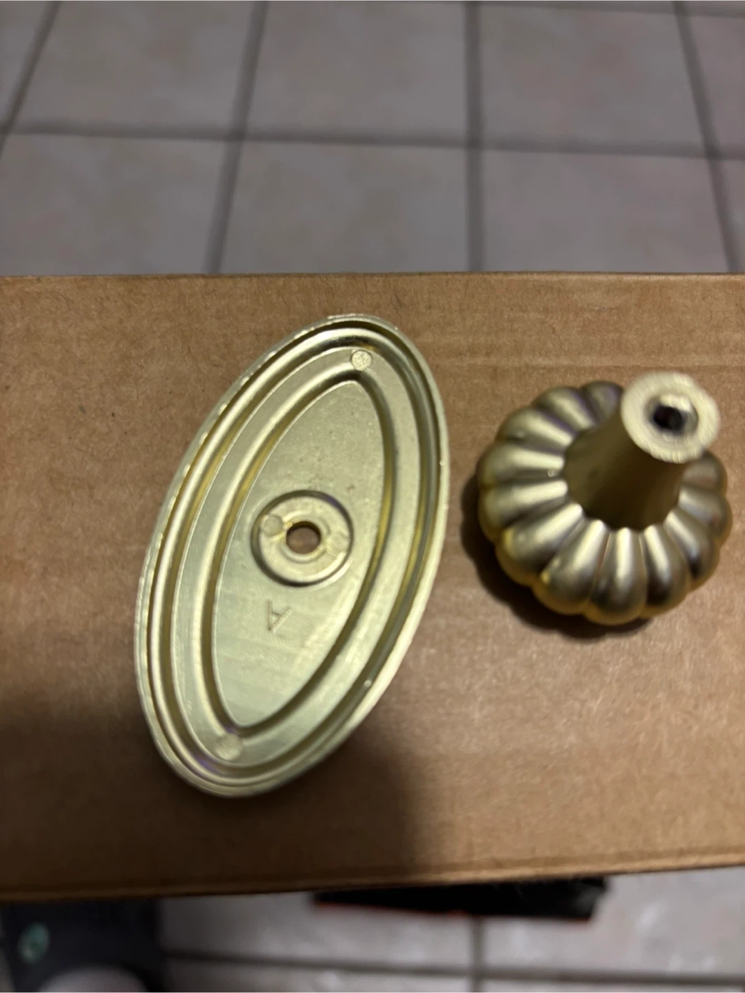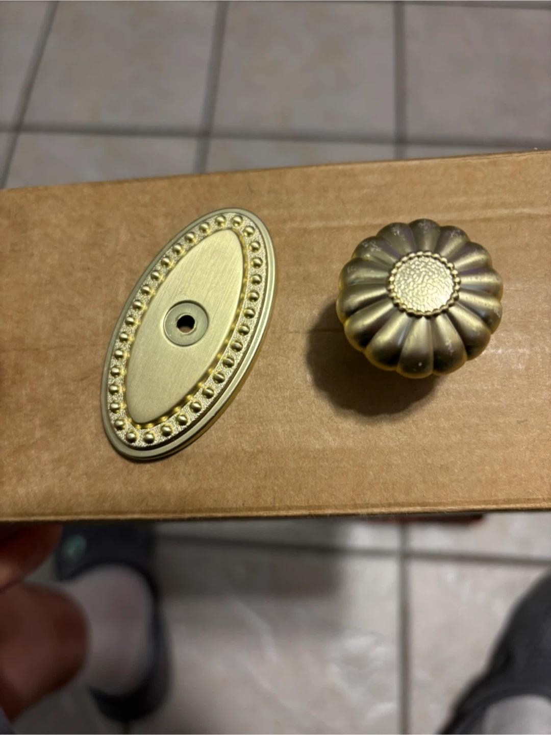 Selling an Amerock cabinet knob with a backplate. These are gold colored and in good condition. Perfect for updating your cabinets or drawers! 9 pcs