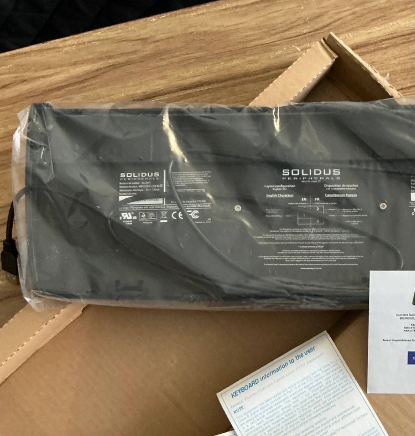 Selling a 2 brand new Solidus Peripherals keyboard! It's still sealed in its original packaging. This keyboard is the French layout version, perfect for anyone who needs to type both in English & French. Comes with the box and keyboard information manual. $35 for both or $20 each.