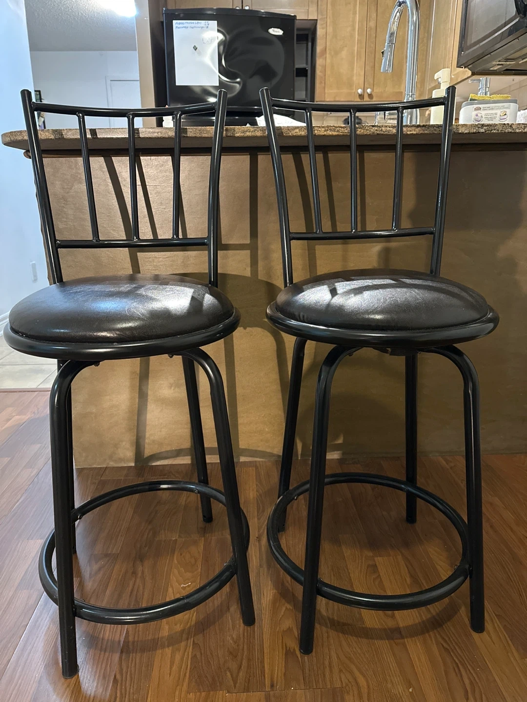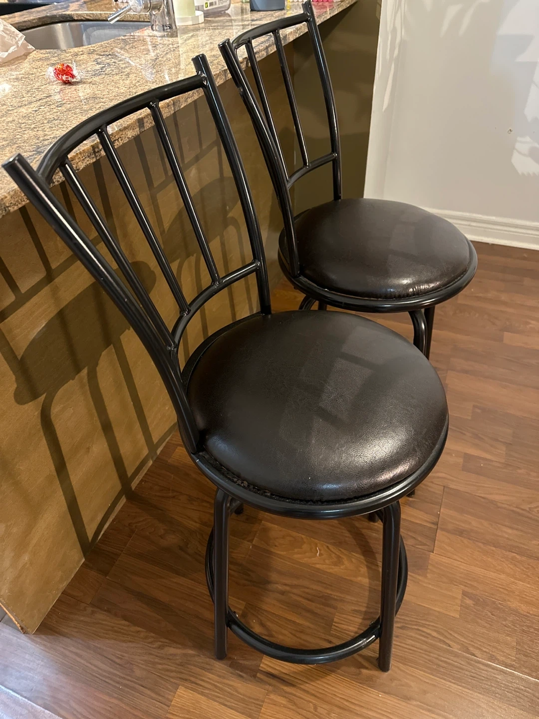 Selling a set of two black swivel bar stools. They're in great condition and would look great in any kitchen or bar area!