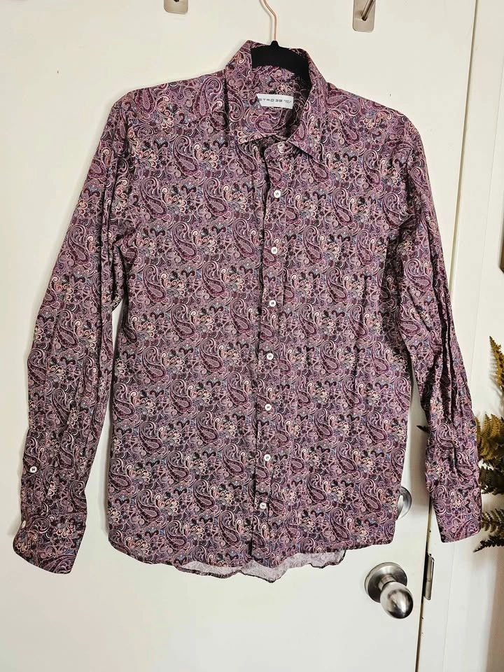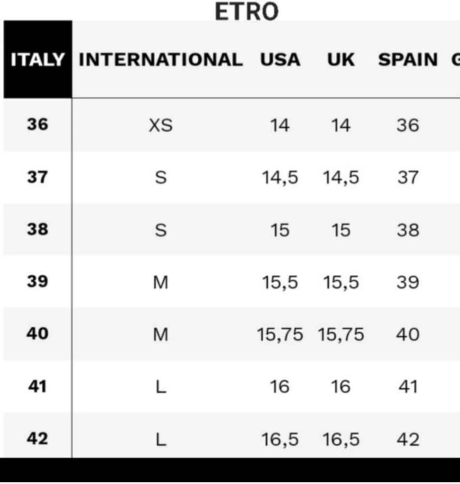 Shirt is in very good used condition and is a size 39, equivalent to a US Medium but on the smaller side of Medium. Pit to pit measures about 20.5", pit to sleeve hem measures about 22", shoulders measure about 17", and shoulder to bottom hem measures 25".