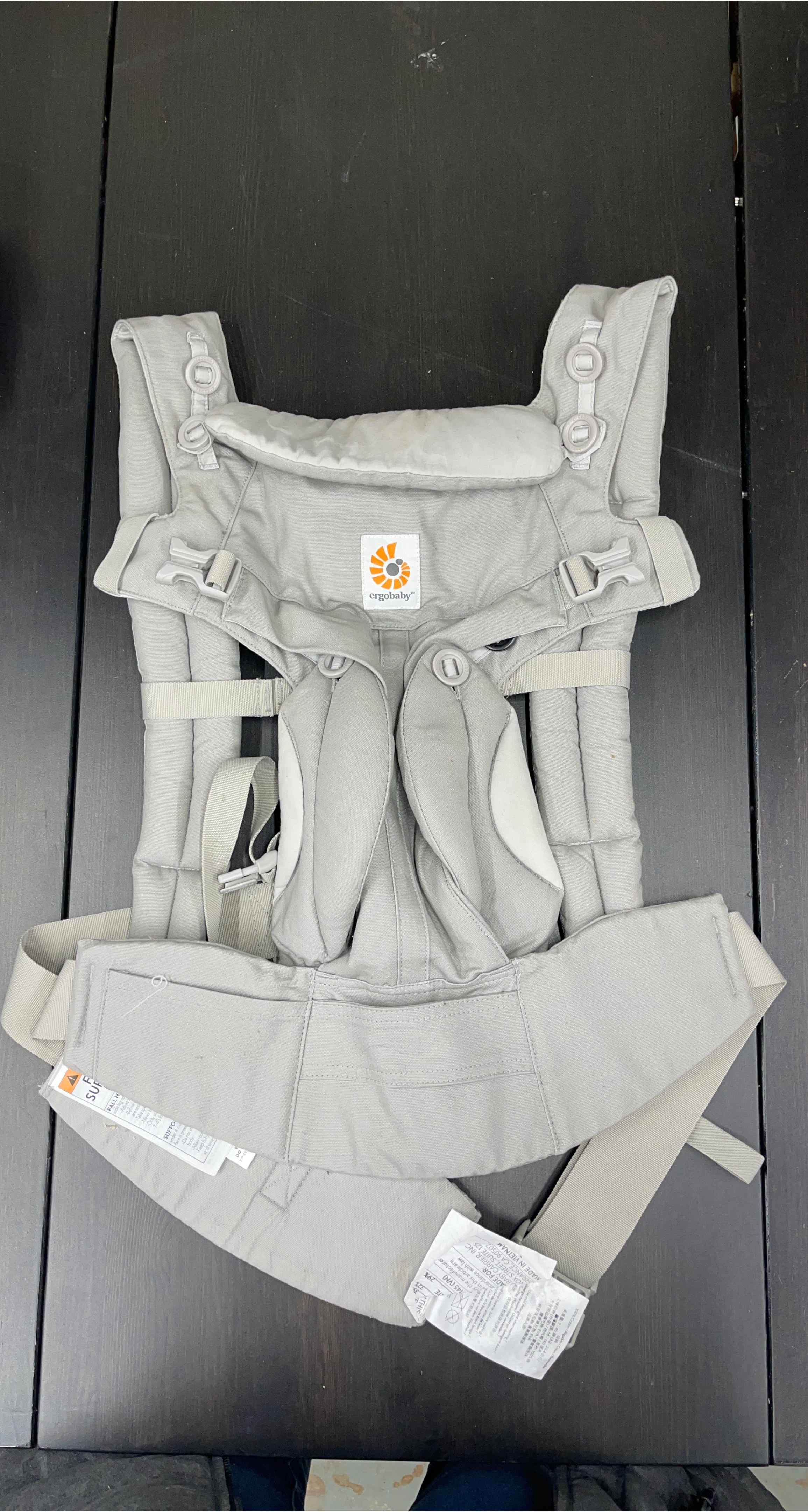 I'm selling an Ergobaby baby carrier in a neutral grey color. It's in great condition and ready for a new little one! Adjustable so it can continue to be used as baby grows.