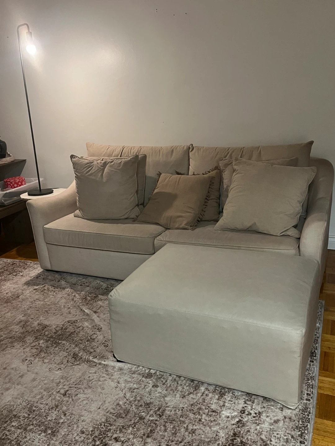 Beige Sofa with Ottoman