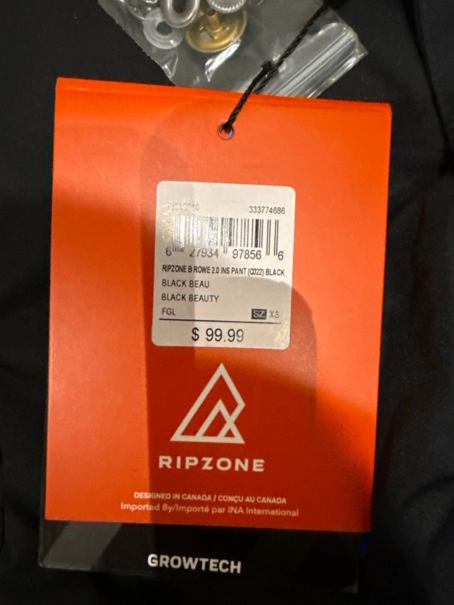 These Ripzone snow pants are new with tags, extra small size, ready to keep your little one warm and dry on the slopes. They feature water-resistant fabric and Growtech technology for adjustable length.