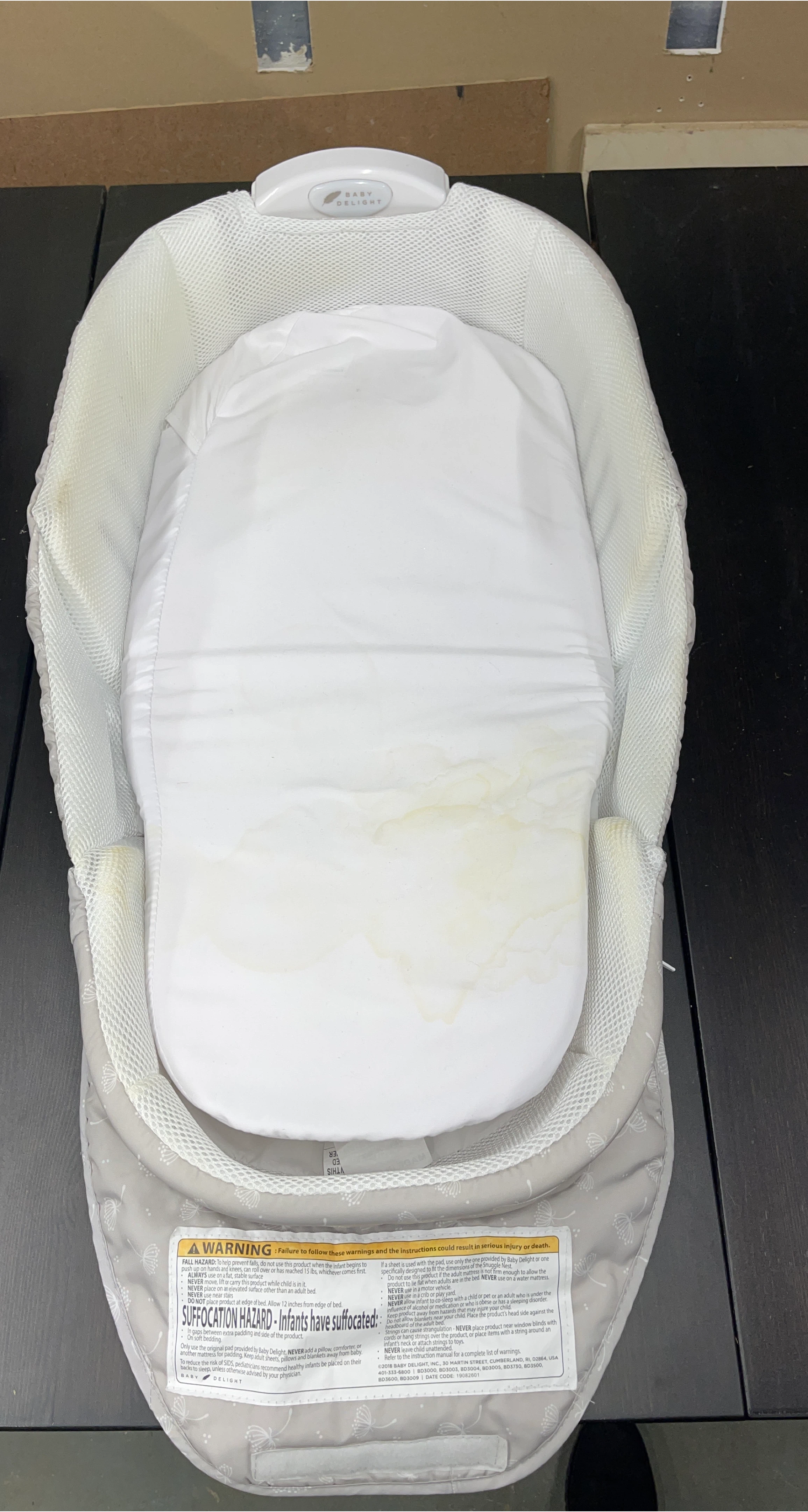 Selling a Baby Delight Infant Snuggle Nest. It shows signs of use, but is still functional. Perfect for keeping your little one cozy and secure! Light weight and easy to bring with for infant naps away from home. Easy to wash.